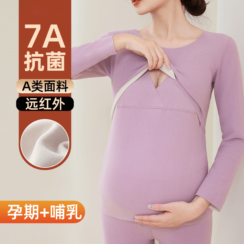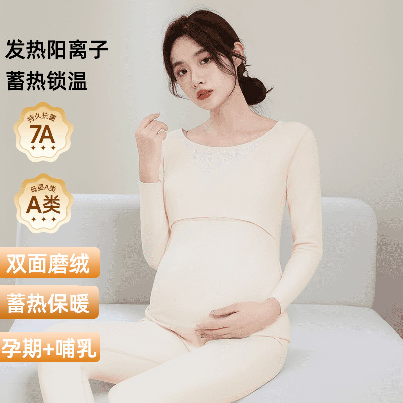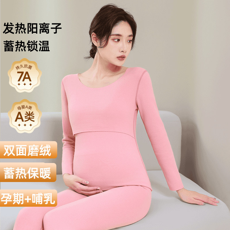 婧麒孕妇秋衣秋裤套装保暖内衣孕期打底产后哺乳喂奶大码月子服冬