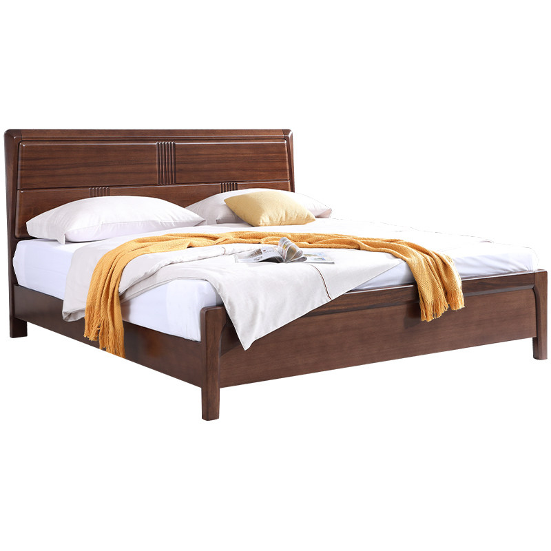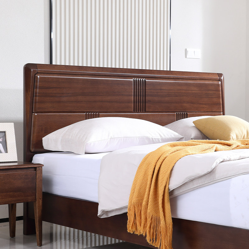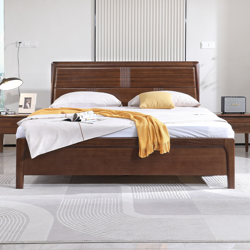 实木床现代简约胡桃木主卧1.5米双人床1.8米主卧轻奢婚房双人床