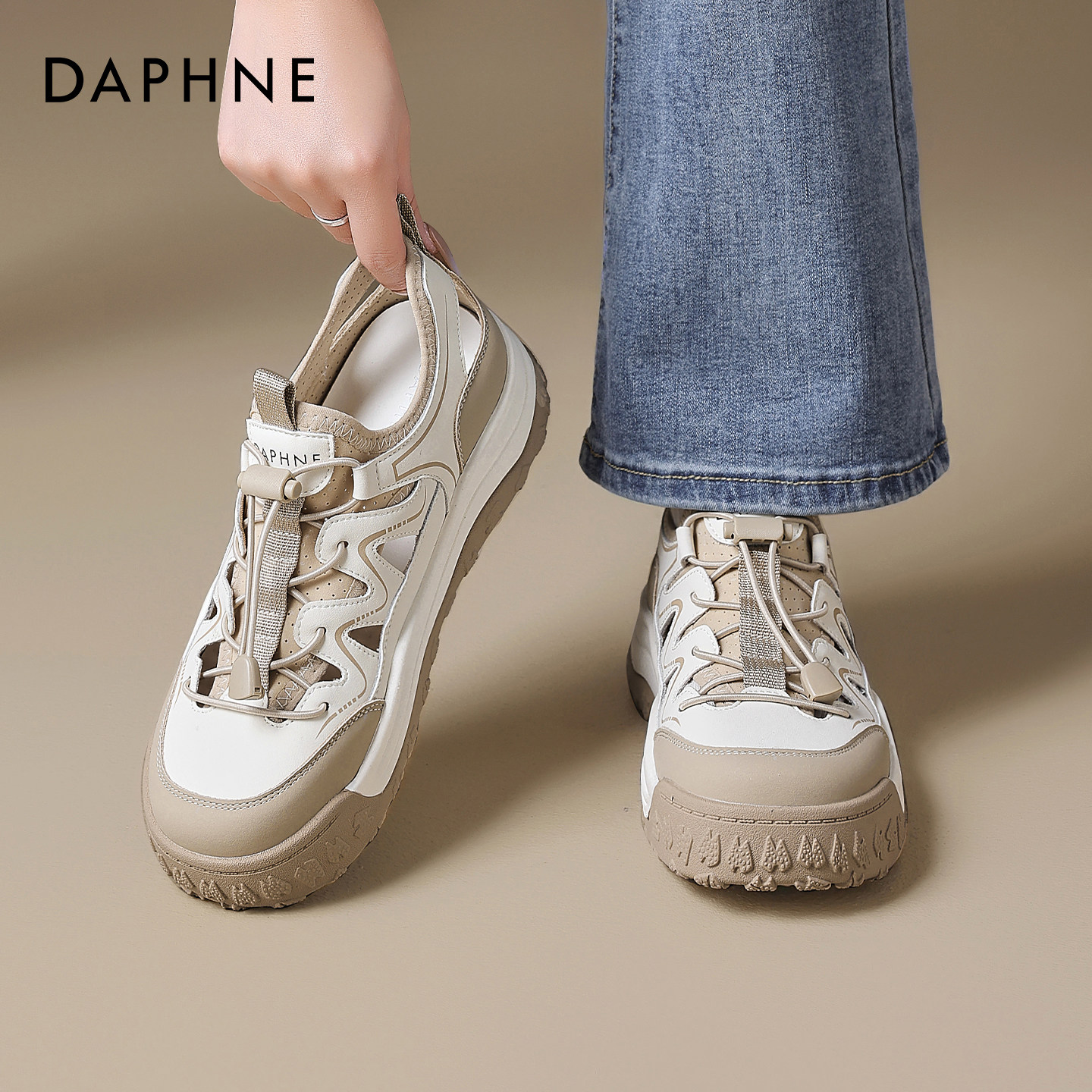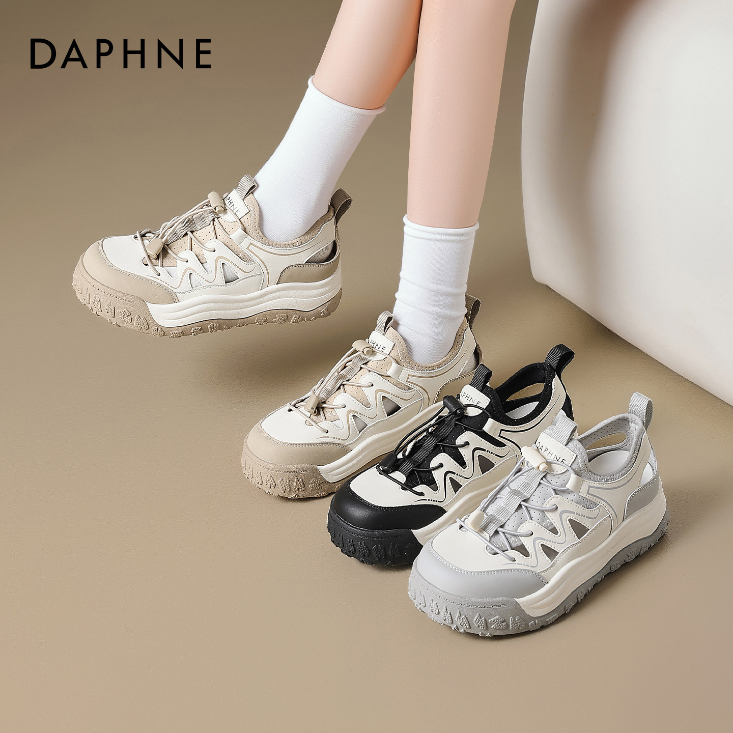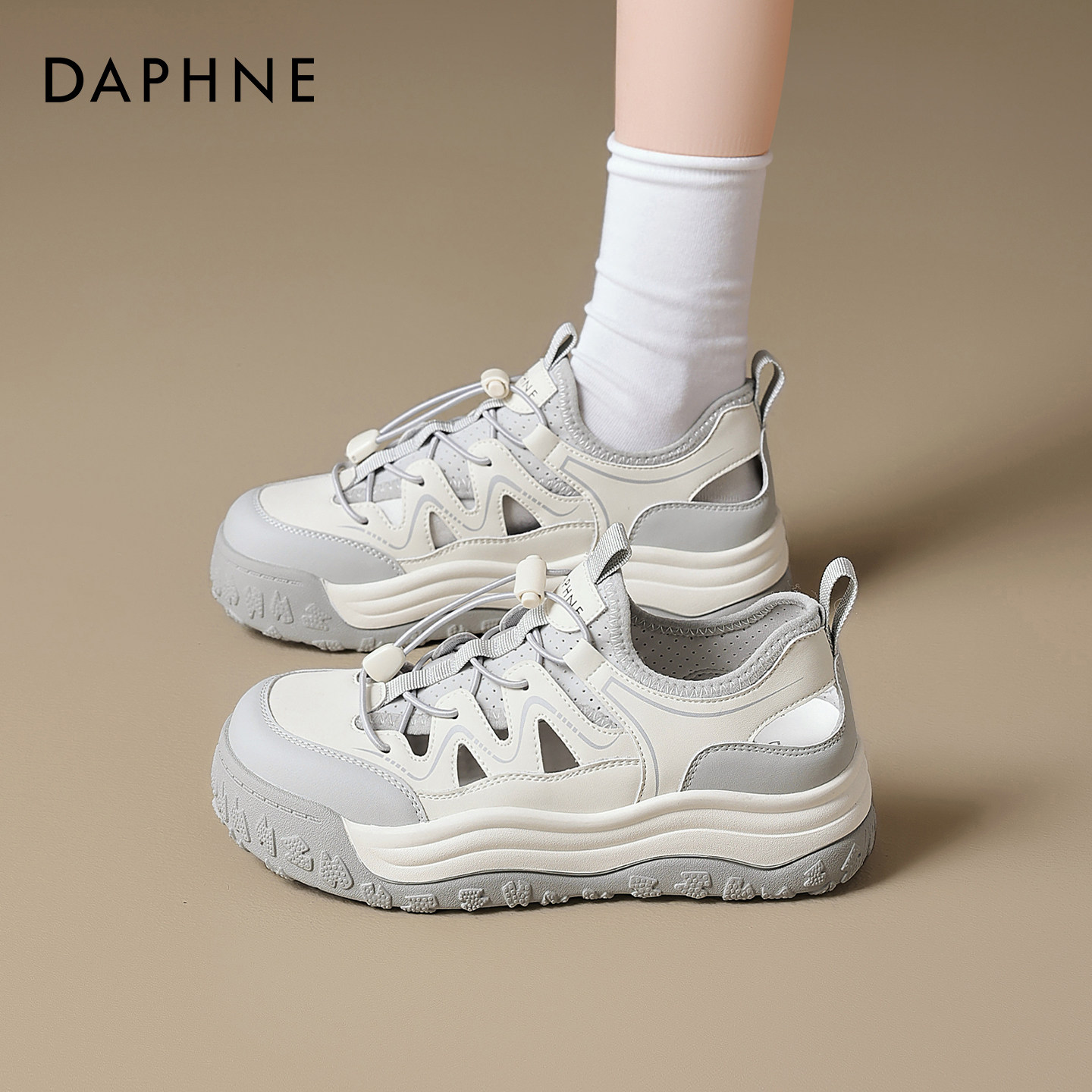 达芙妮厚底运动凉鞋女2026新款户外登山轻便板鞋镂空透气老爹鞋爆