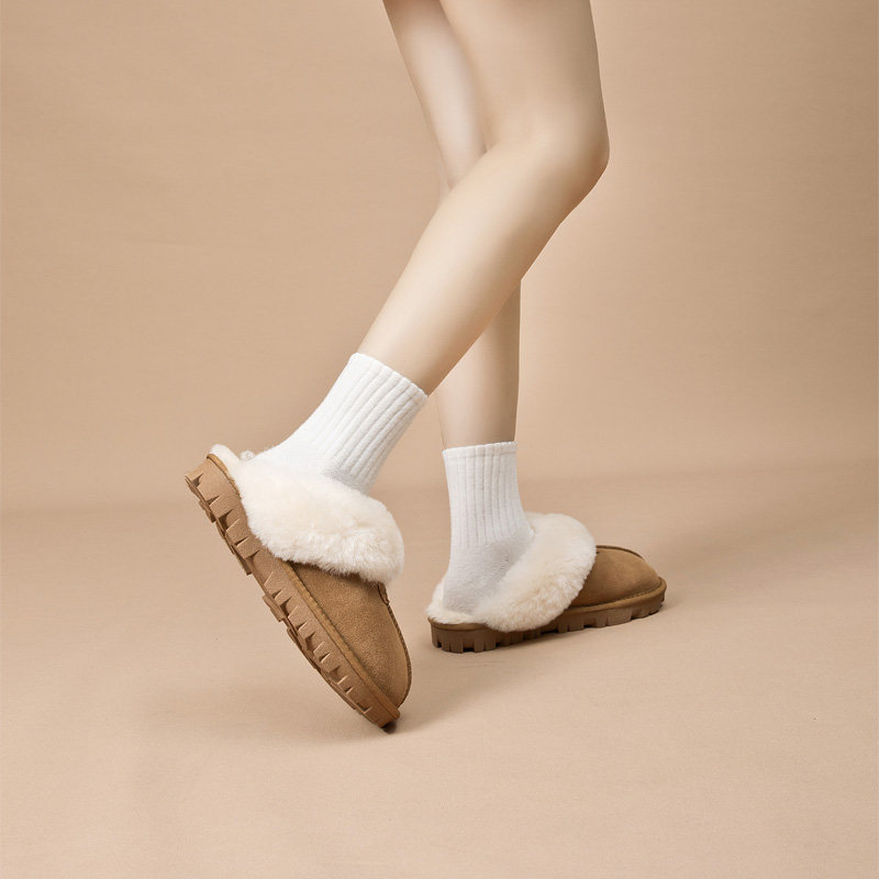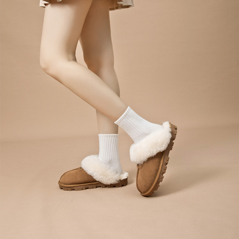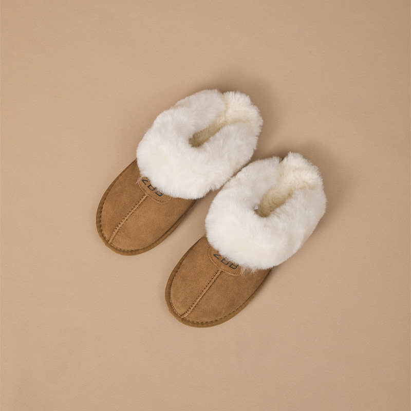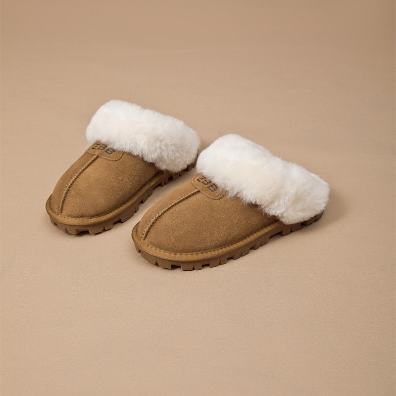 ZBB(女鞋)真皮真羊毛懒人鞋居家可外穿雪地靴加绒棉鞋半拖保暖