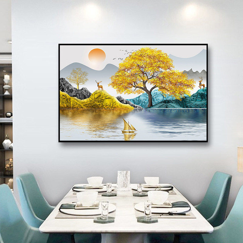 床头贴画装饰画客厅沙发背景自粘卧室墙贴3D现代风景轻奢山水墙纸