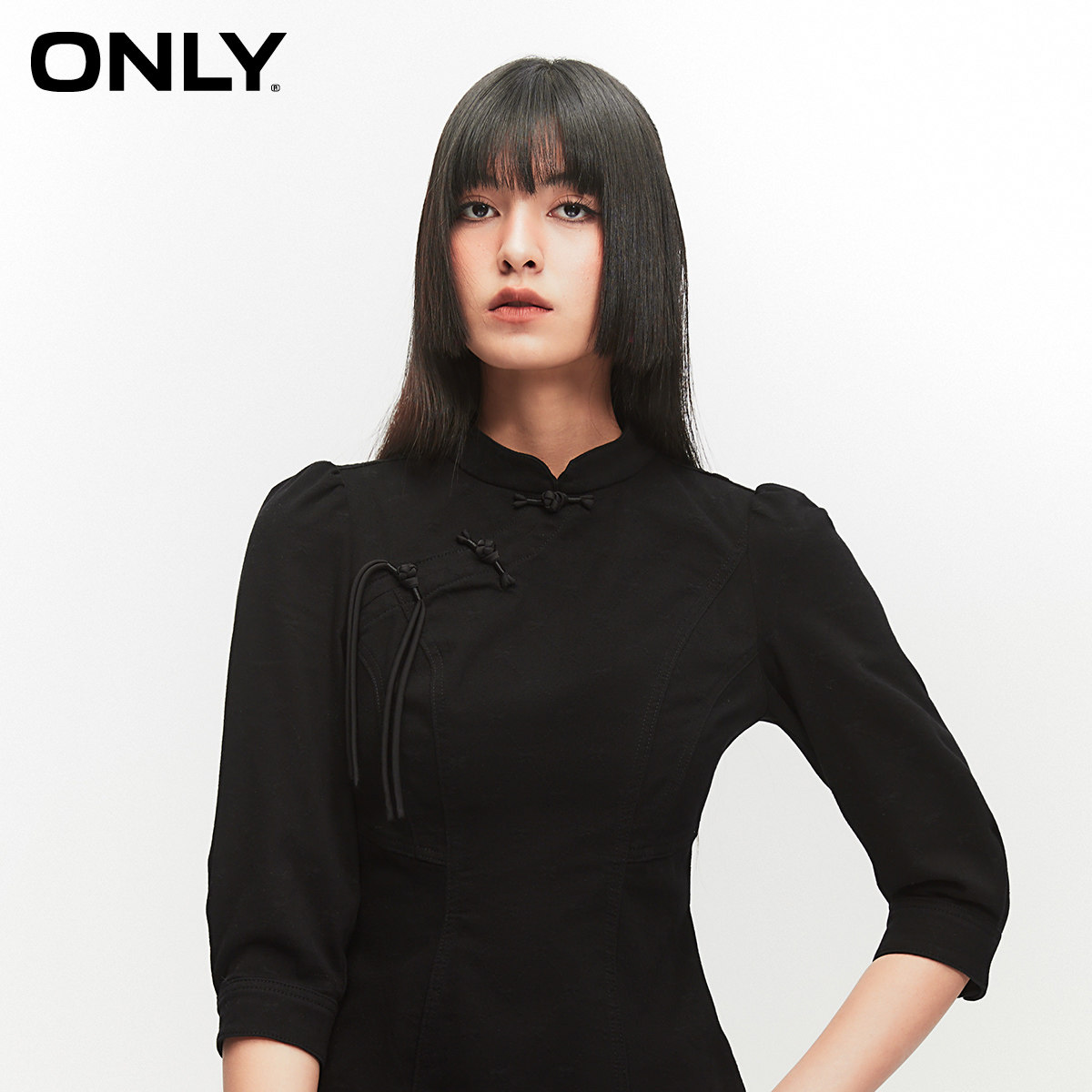 中式小立领盘扣 暗纹压花面料 立体胸部裁剪