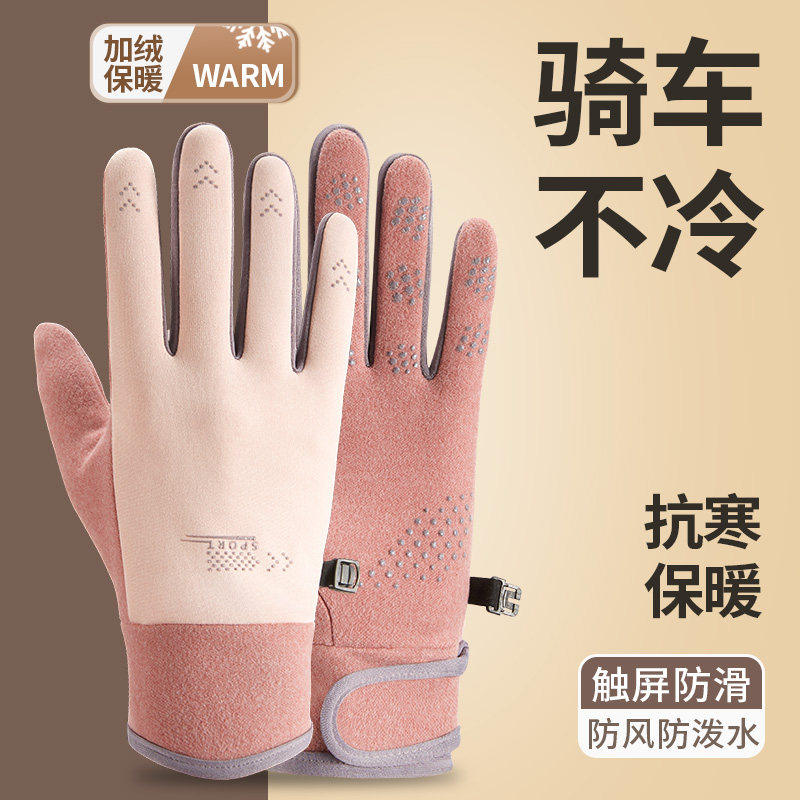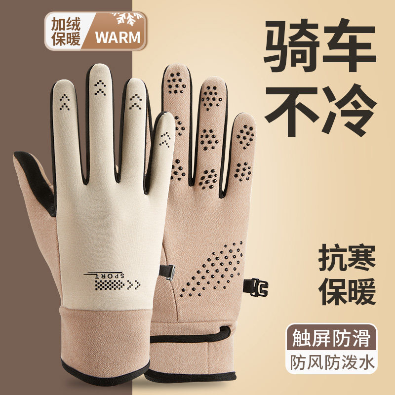 保暖手套女秋冬触屏加厚户外骑行开车德绒防风运动手套防冻男女款