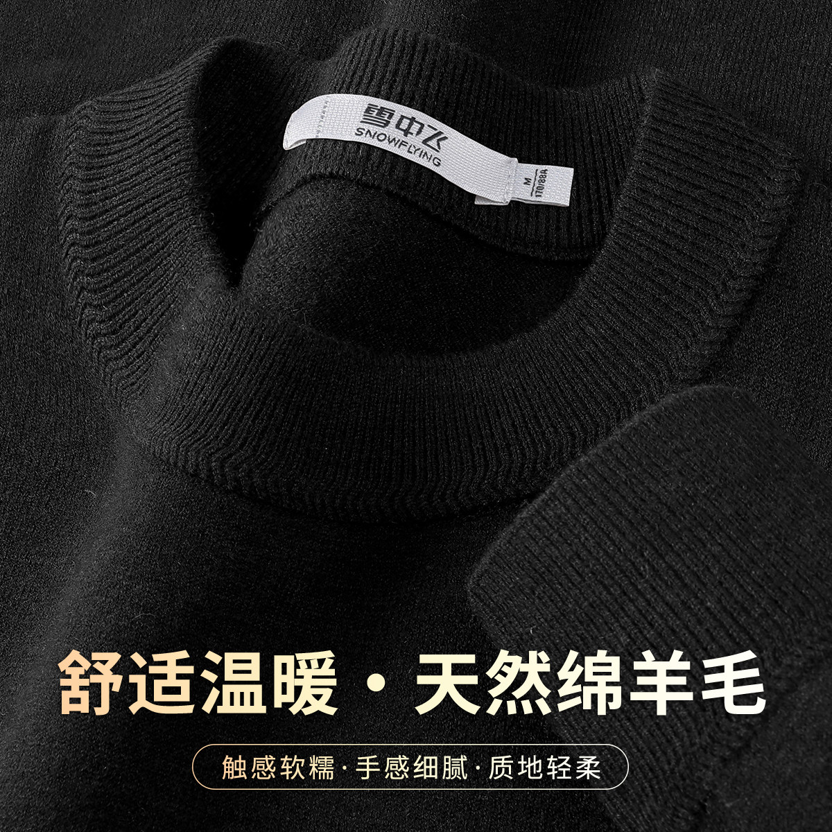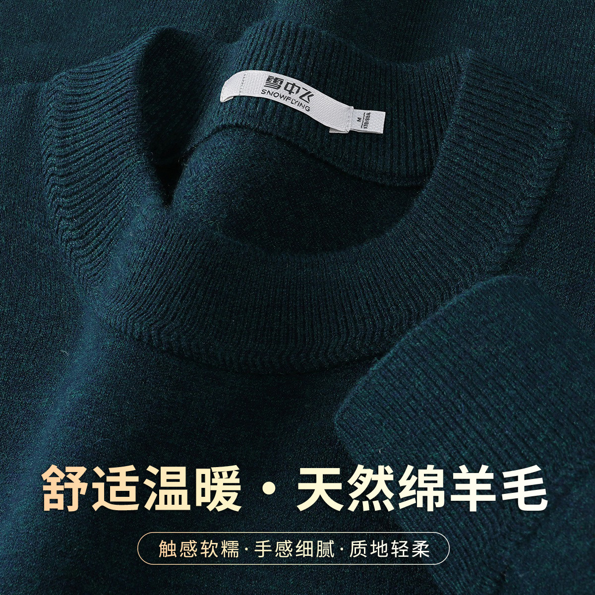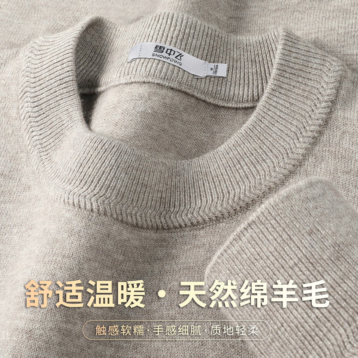 雪中飞秋冬内搭毛衣男含羊毛舒适简约休闲男士圆领打底羊毛衫W