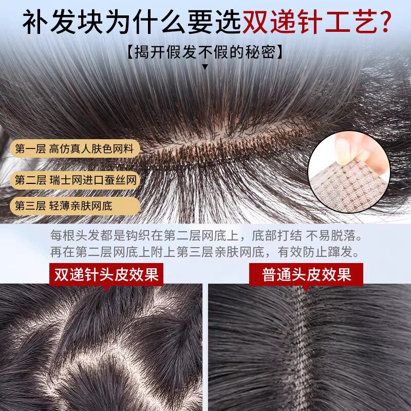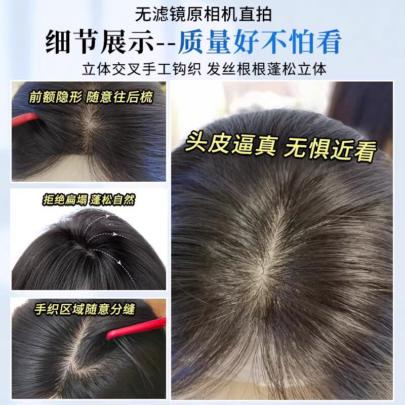 补发片假发片女头顶量蓬松遮白发真发全真发高颅顶无痕八字发际线
