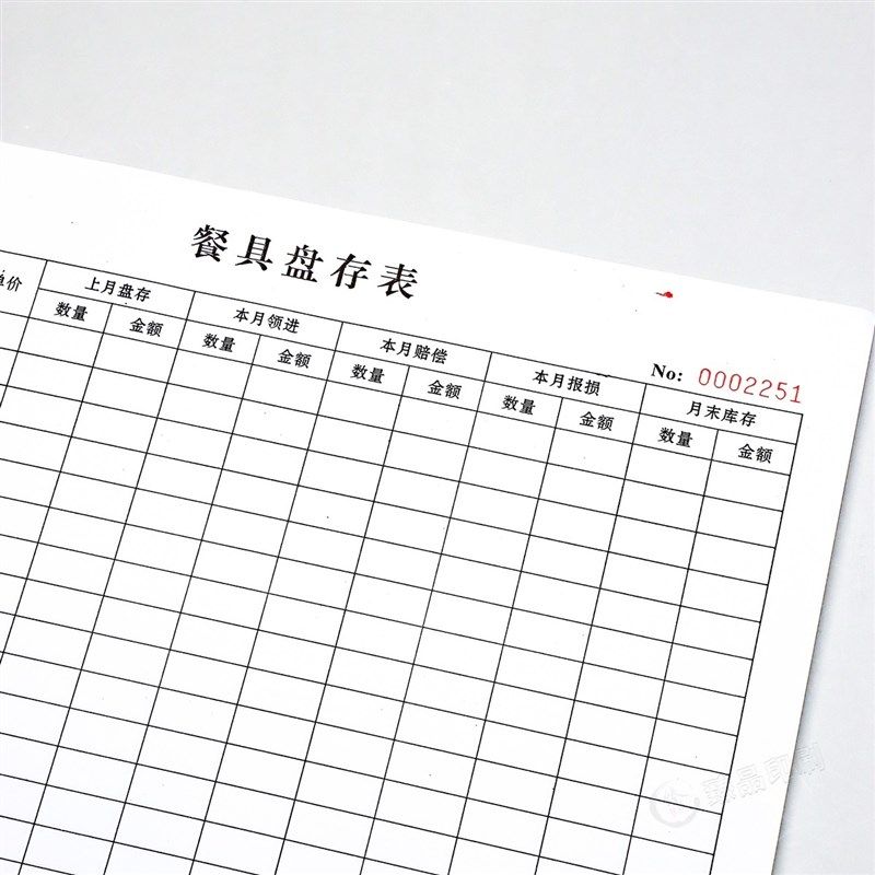 A4酒店餐厅餐具盘存表定制单联餐饮餐具盘点明细表库存管理登记本