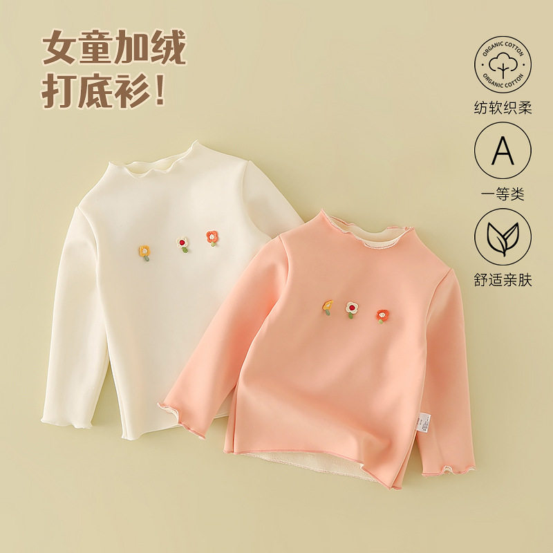 女童衬衫 2026冬女宝宝加绒打底上衣A类棉质加厚保暖可外穿
