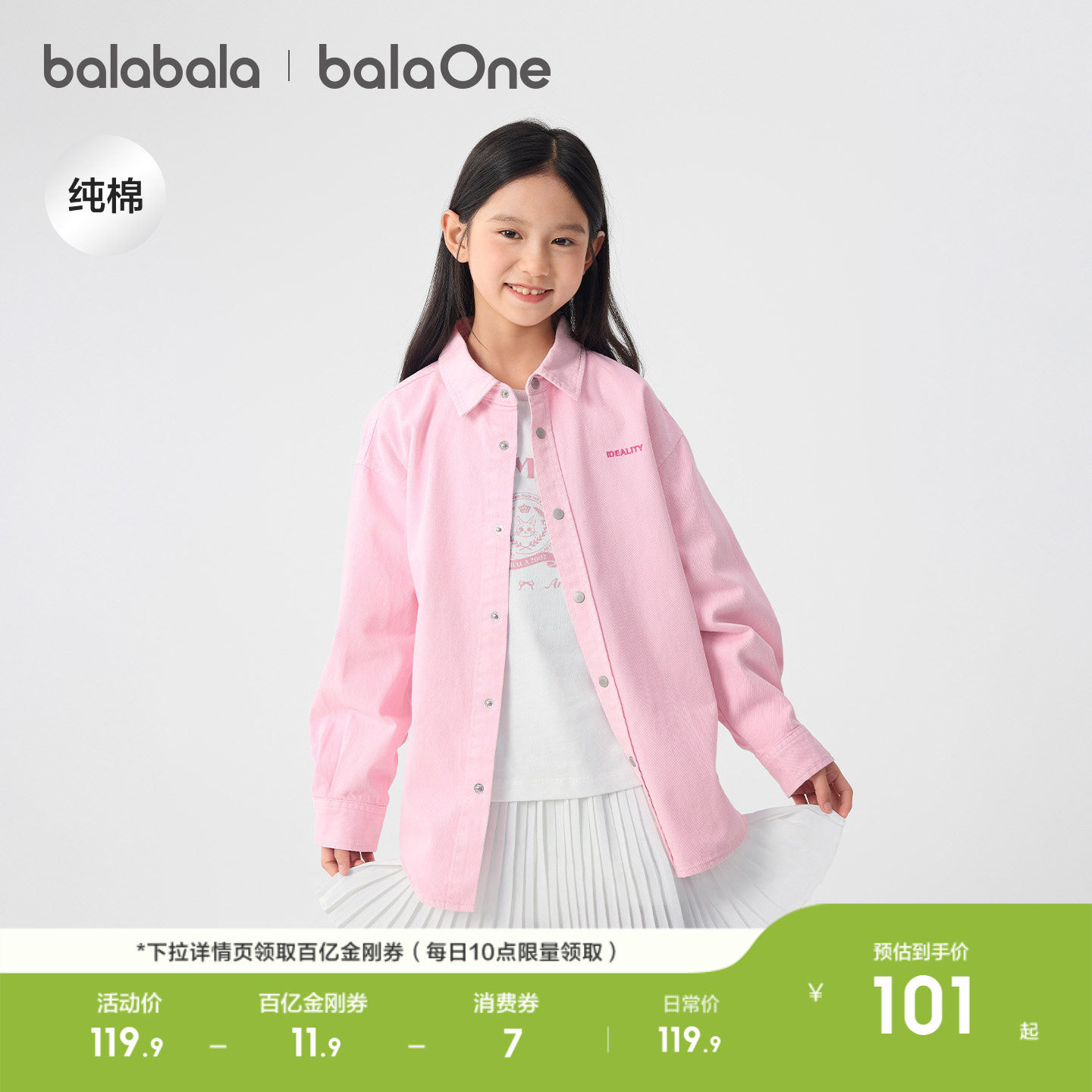 巴拉巴拉童装儿童长袖衬衫女童男童2026新款春装牛仔上衣纯棉舒适