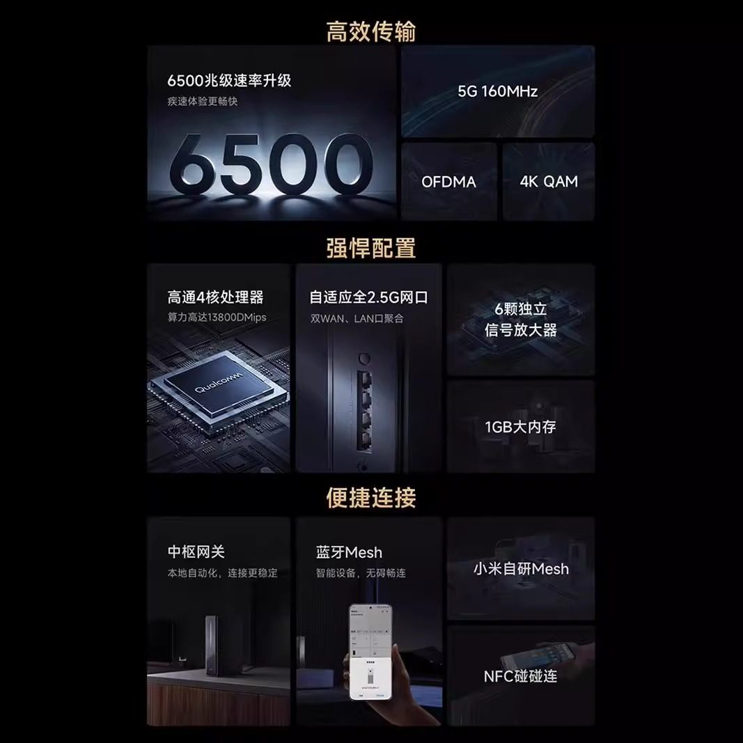 小米BE6500Pro路由器WiFi7家用穿墙千兆高速全屋覆盖大户型端口5G