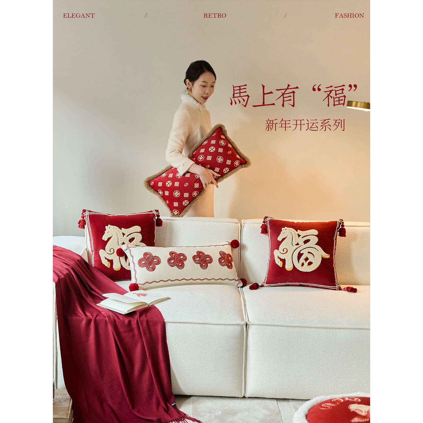 2025新款红色新年现代轻奢客厅沙发靠垫