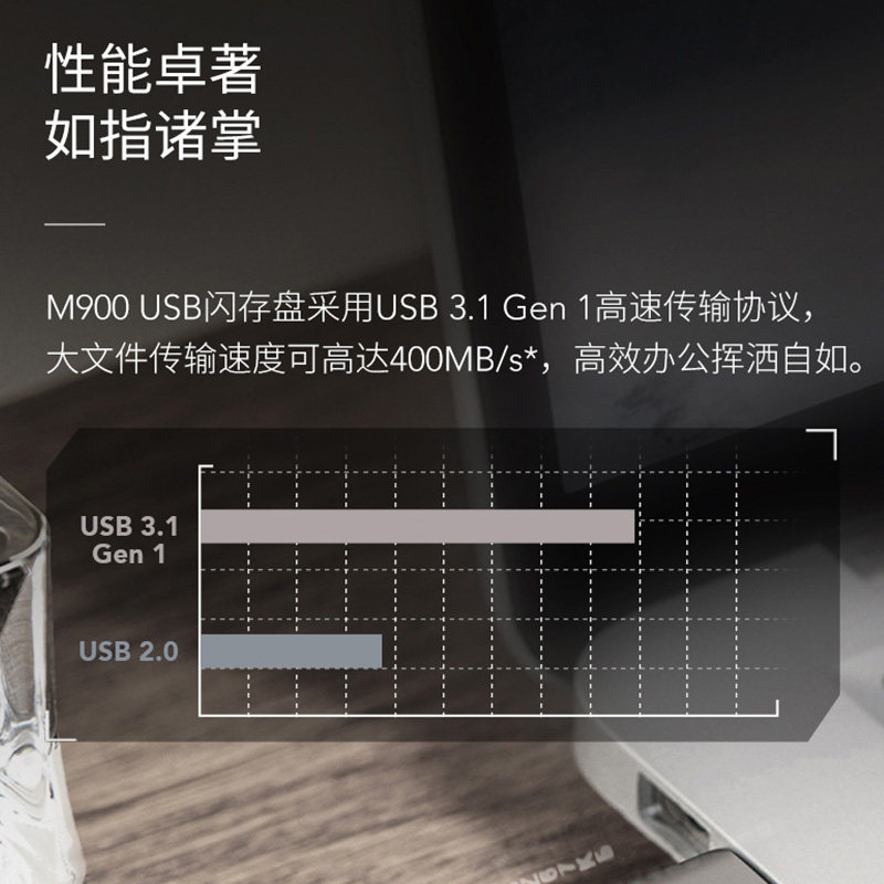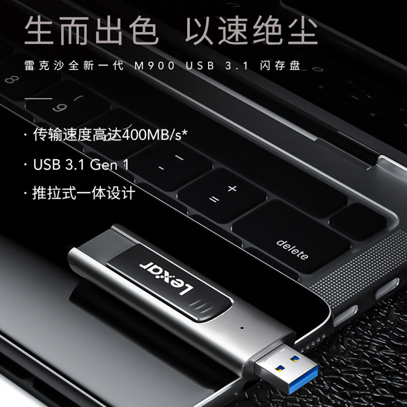 雷克沙128GB USB3.1高速U盘 M900读400MB/s 枪色磨砂质感推拉一体