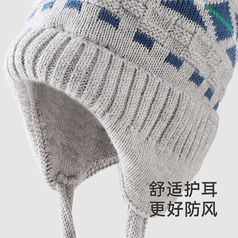 hugz儿童帽子男孩女孩保暖针织毛线帽秋冬季户外护耳防风熊仔帽子
