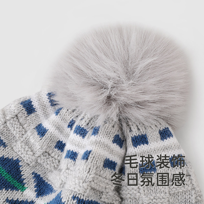 【商场同款】英氏儿童帽子毛织帽冬季保暖男童新款绵羊毛帽子