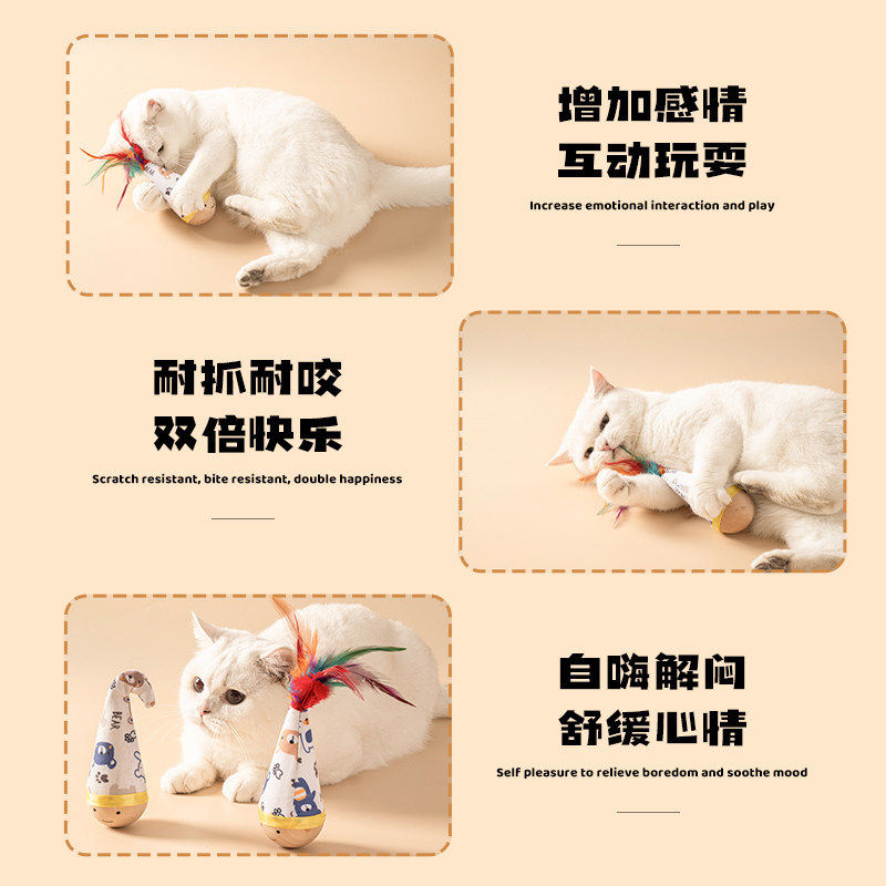 猫咪天然榉木不倒翁扭扭玩具羽毛逗猫棒耐抓耐咬自嗨宠物玩具