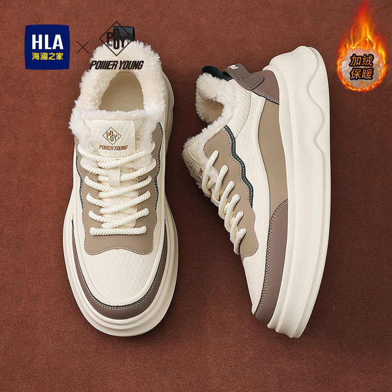 海澜之家男鞋2025新款秋冬季加绒休闲运动棉板鞋男厚底增高小白鞋