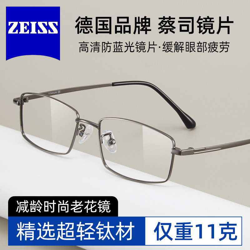 德国蔡司镜片老花眼镜男正品防蓝光抗疲劳JS013超轻高档品牌老人S