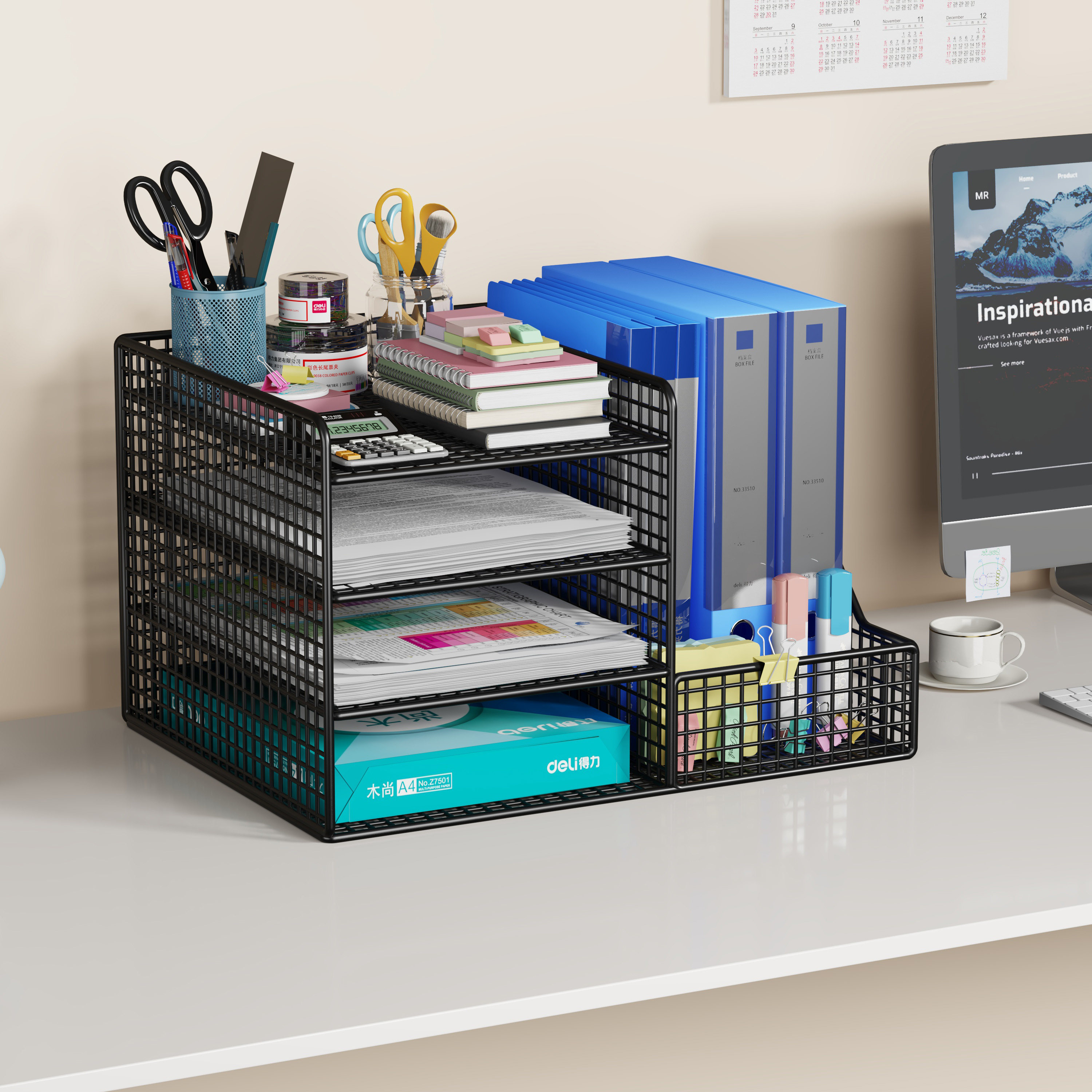 霓峰加厚文件框文件收纳盒金属文件架书架黑色简易立式书立书架桌面办公用品大全文件夹架筐文件盒桌上资料架