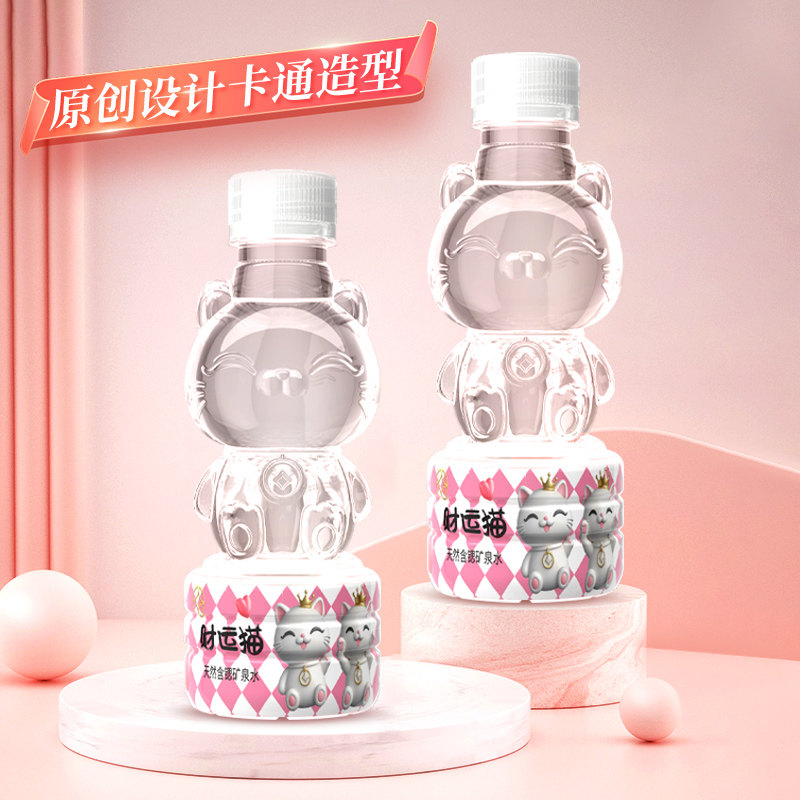 【日期新鲜】财运猫天然含锶矿泉水261ml*12瓶一整箱可爱小猫包邮