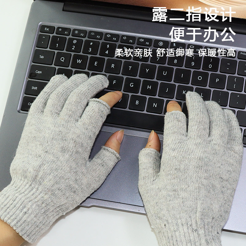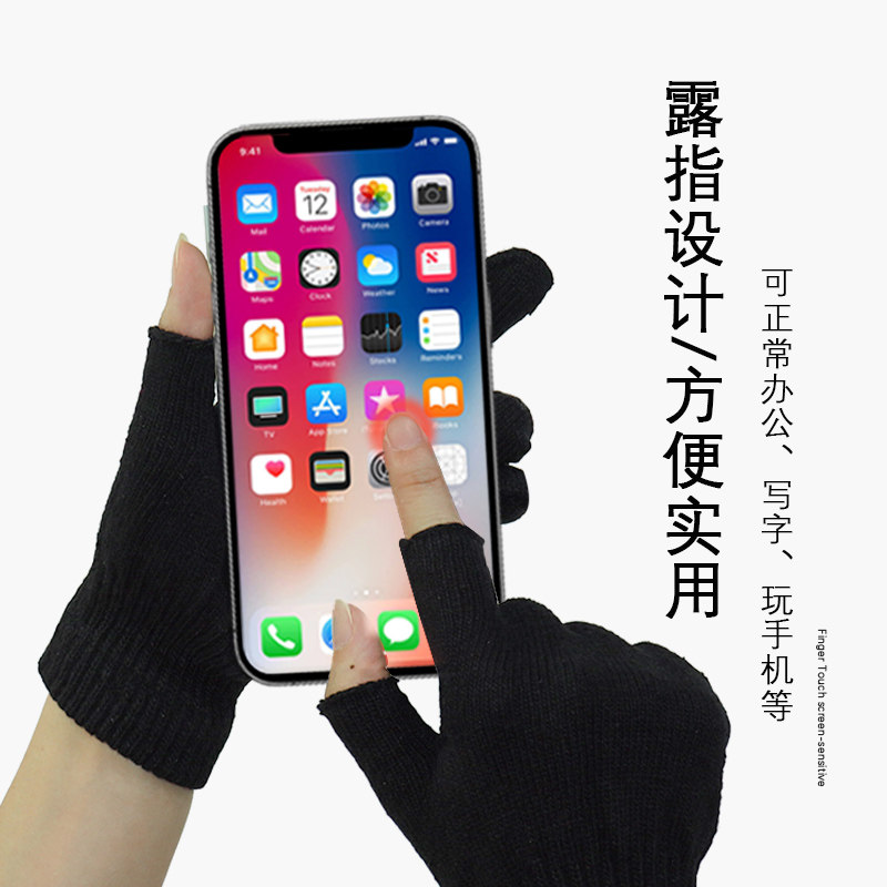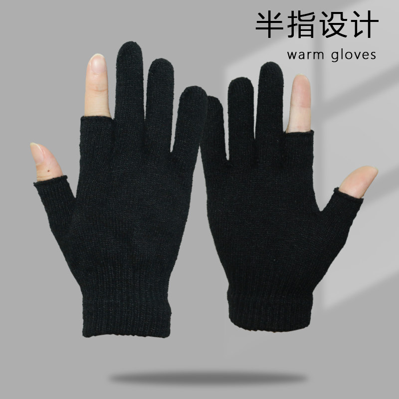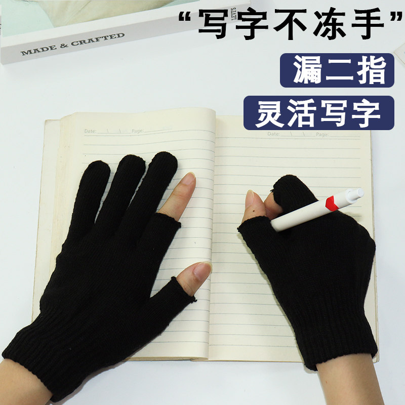 露二指手套男女秋冬季学生保暖半指毛线针织红色粉色露指可触屏