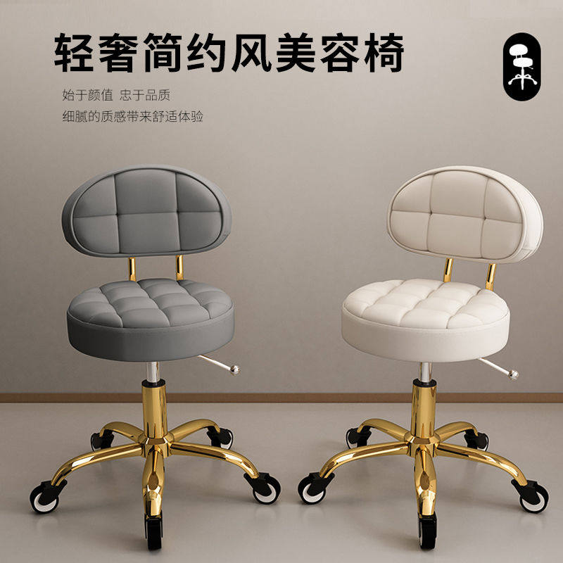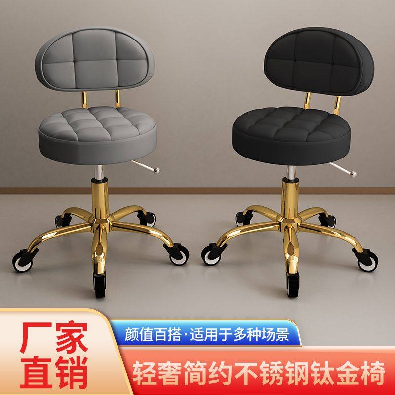 2025美容凳美容院旋转升降滑轮大工椅理发店专用美发美甲家用靠背圆凳