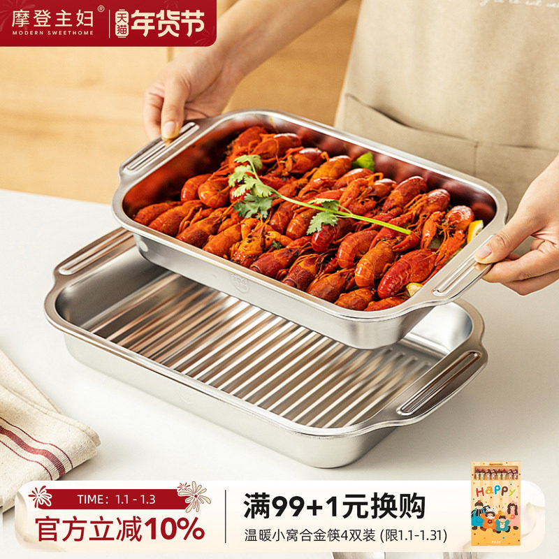 摩登主妇烤鱼盘小龙虾专用盘304不锈钢餐具海鲜捞汁火锅备菜托盘