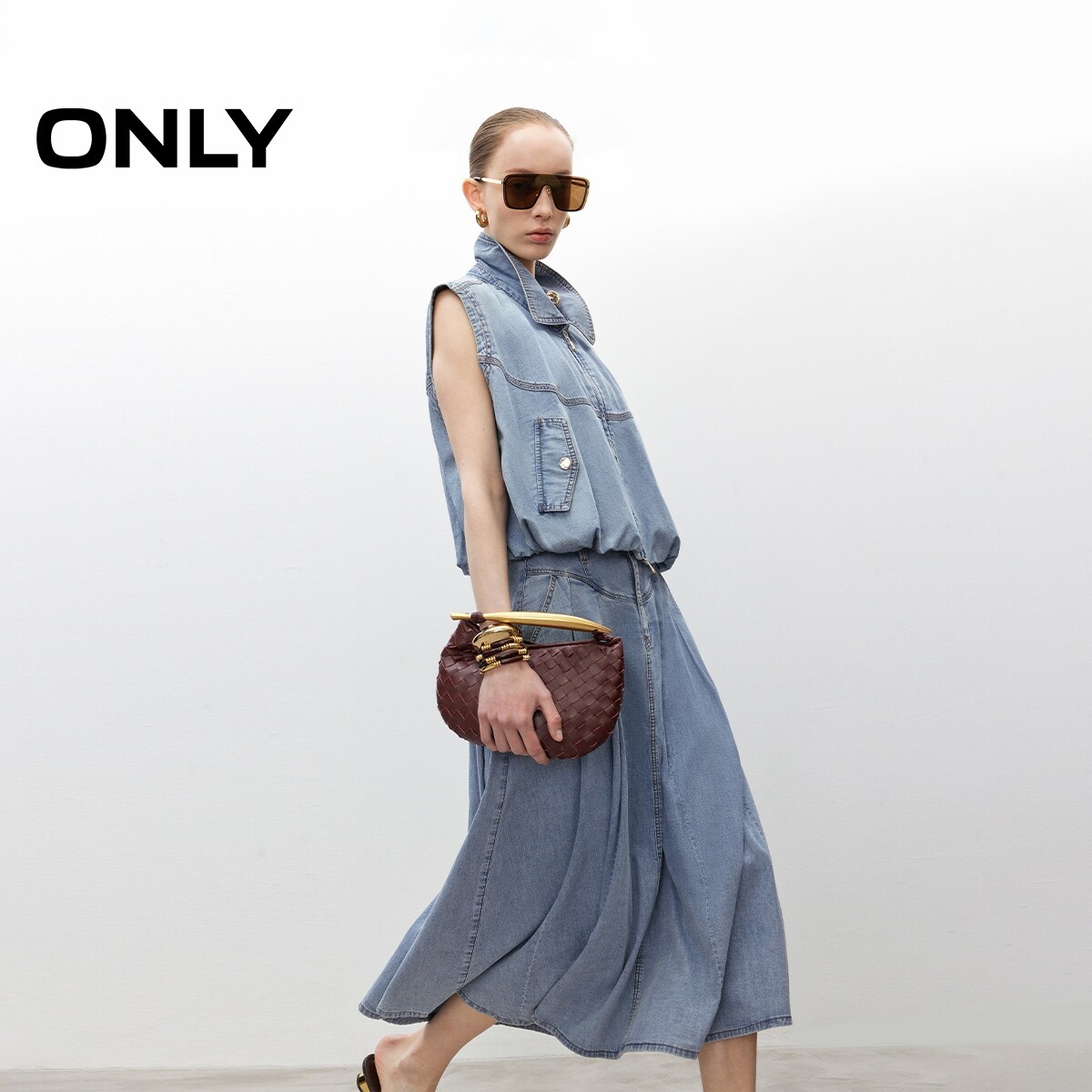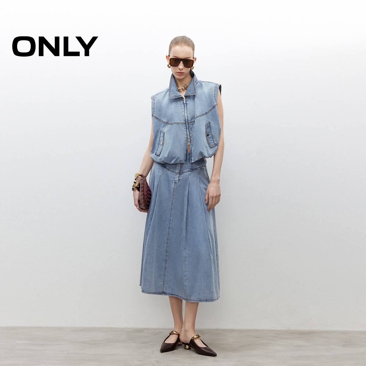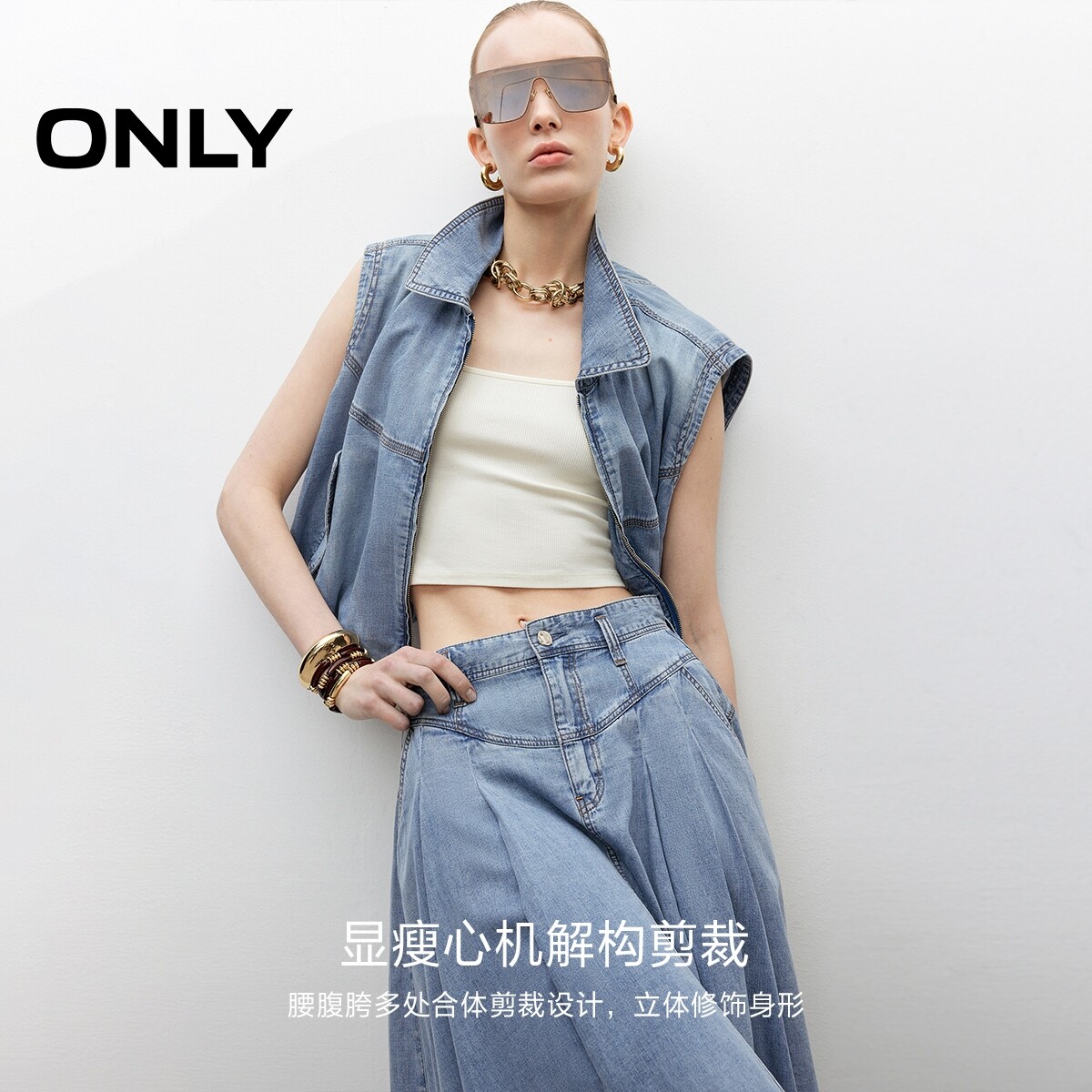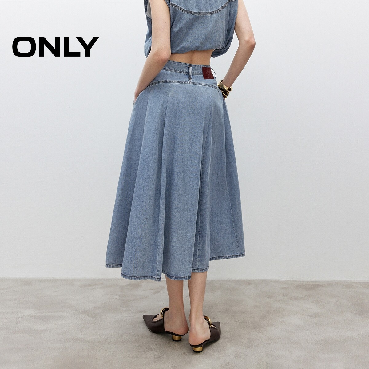 【天丝牛仔】ONLY奥莱春夏新款收腹V字剪裁高腰显瘦中长半身裙女