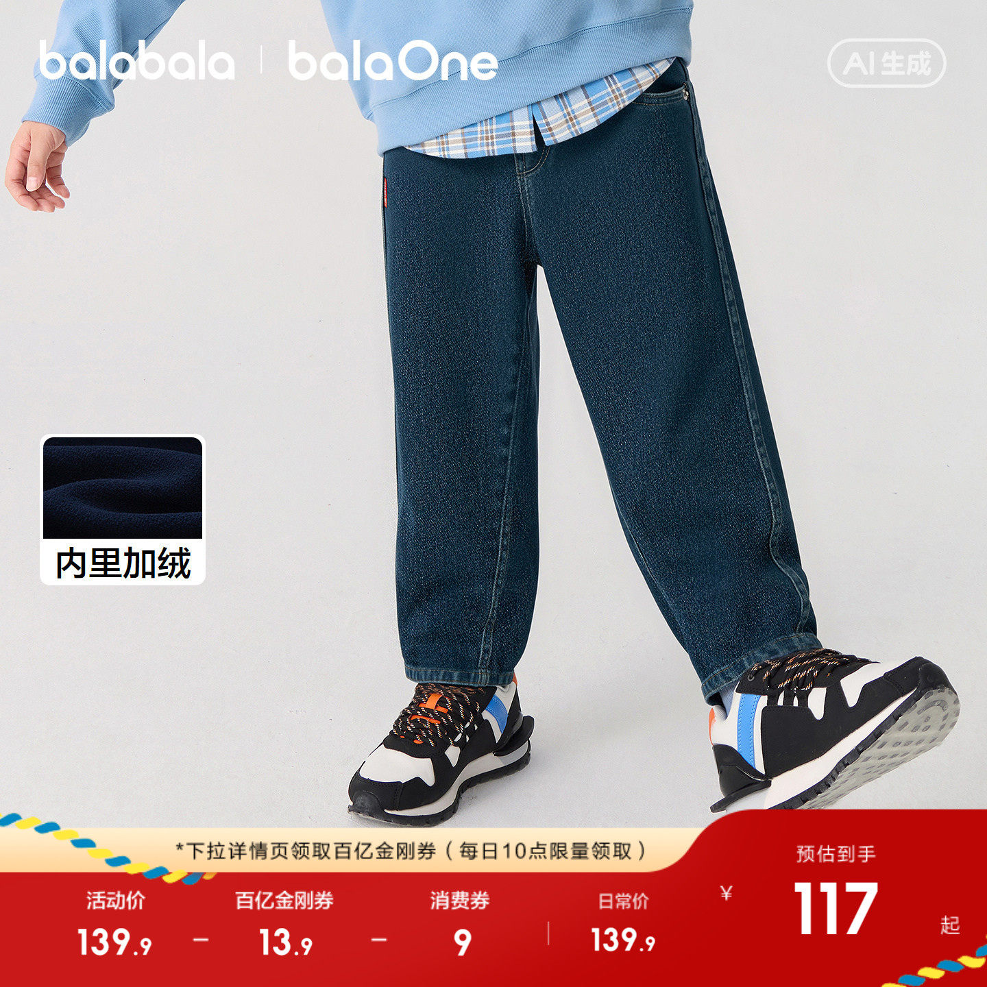 巴拉巴拉童装儿童裤子男童2026新款春秋装加绒拜年服牛仔裤保暖潮