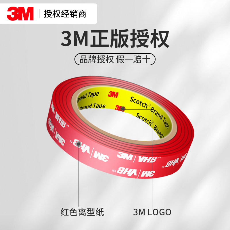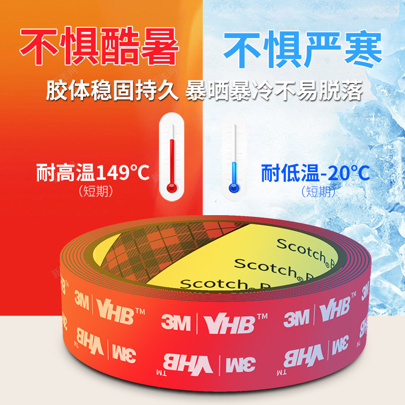 3M5952双面胶强力高粘度车用耐高温加厚黑色VHB粘胶泡棉手机支架无痕防水固定墙面摆件粘贴汽车尾翼专用胶带