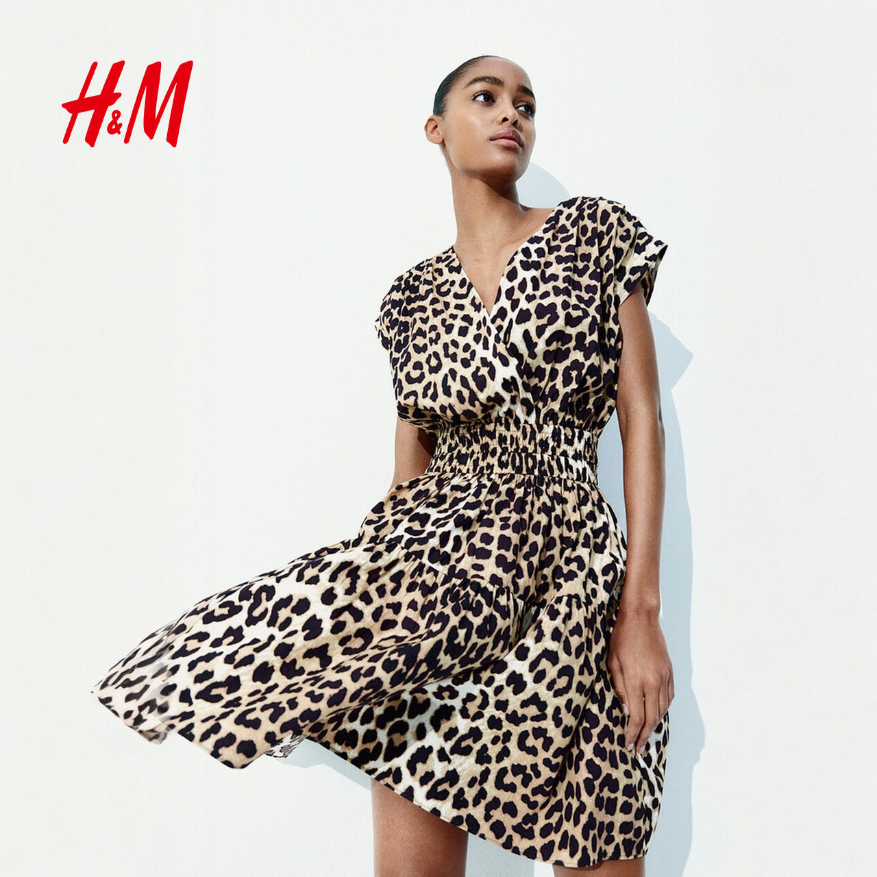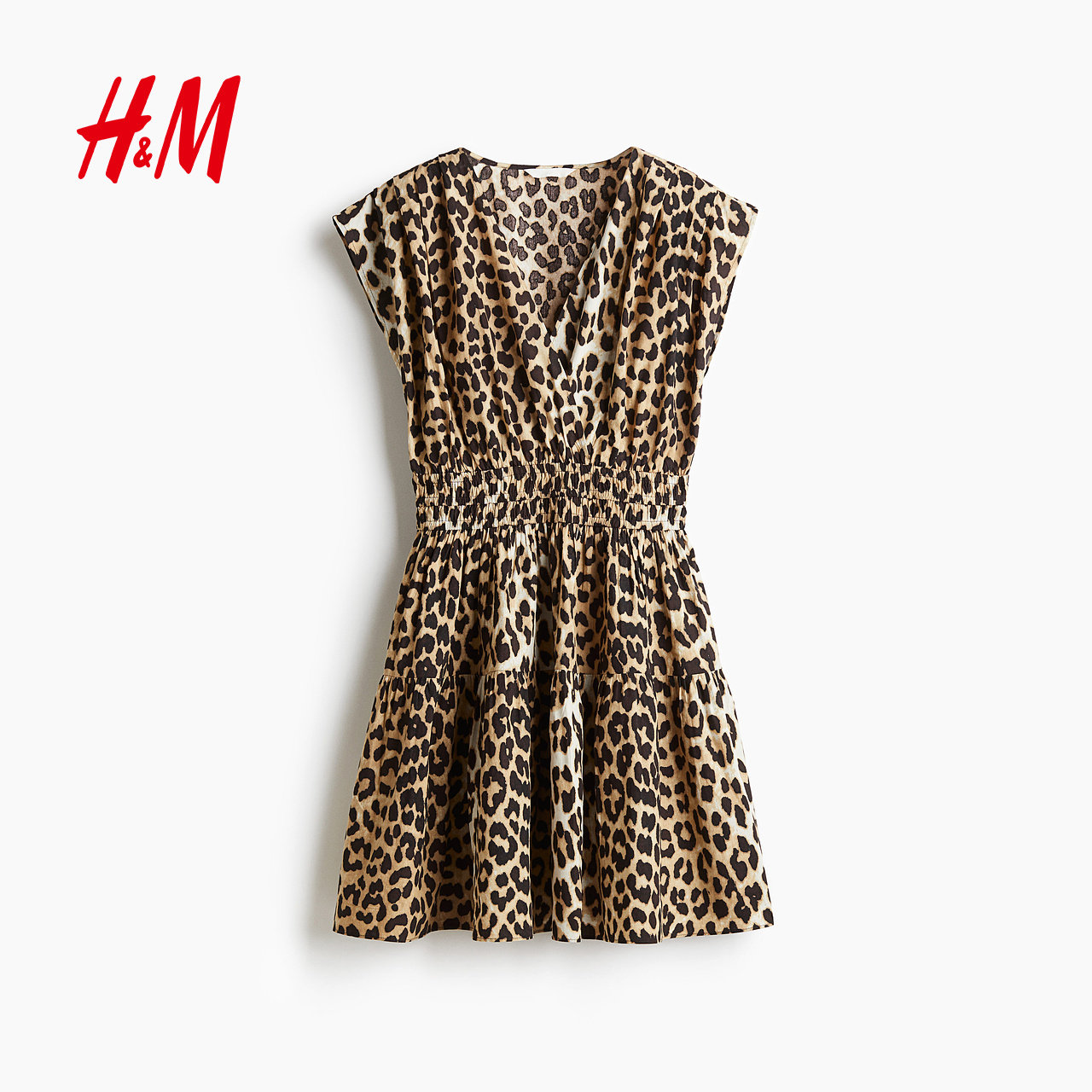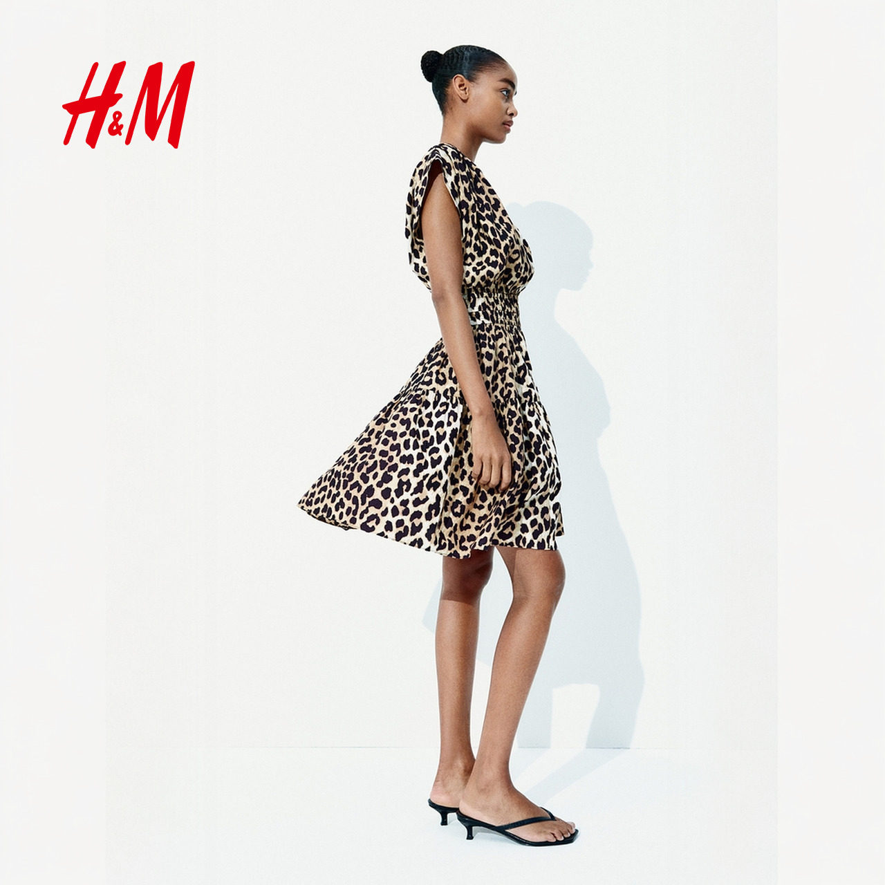 HM女装连衣裙2025年冬季新款收腰短袖a字版型设计感碎花裙1280532