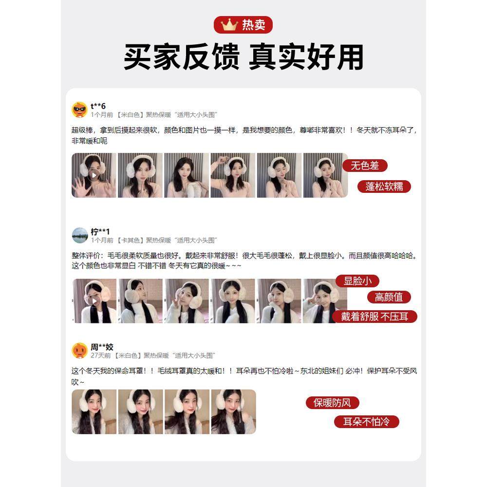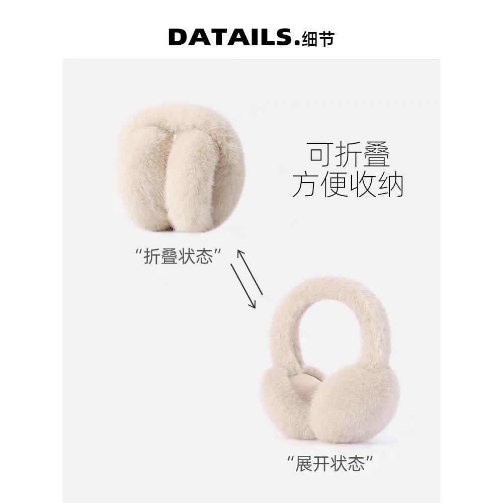 毛绒耳罩冬季保暖耳包护耳朵耳捂子可折叠学生防冻耳套白色防风