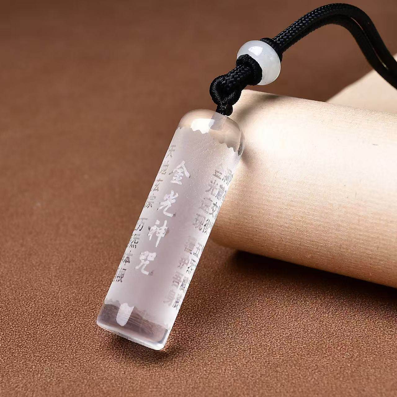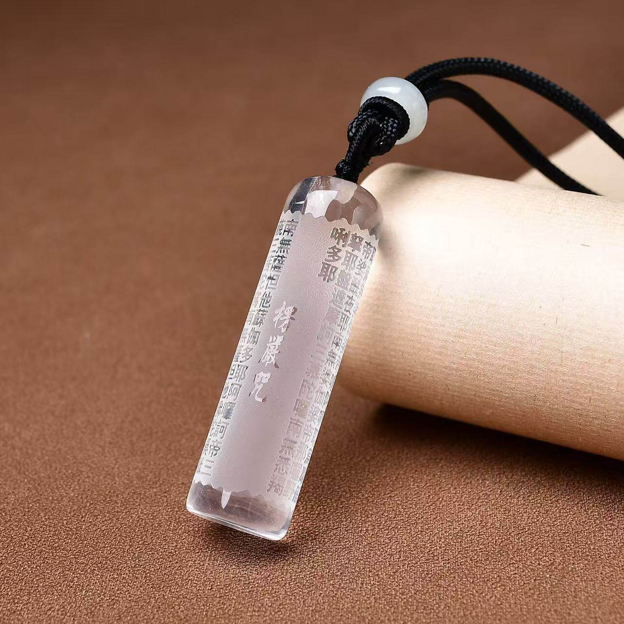 悦卜白水晶圆柱吊坠楞严咒金光项坠毛衣链挂坠护身符玉石紫水晶