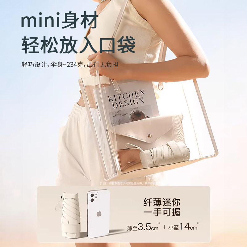 2025新品超轻小巧太阳伞晴雨两用女防晒伞防紫外线便携黑胶遮阳伞