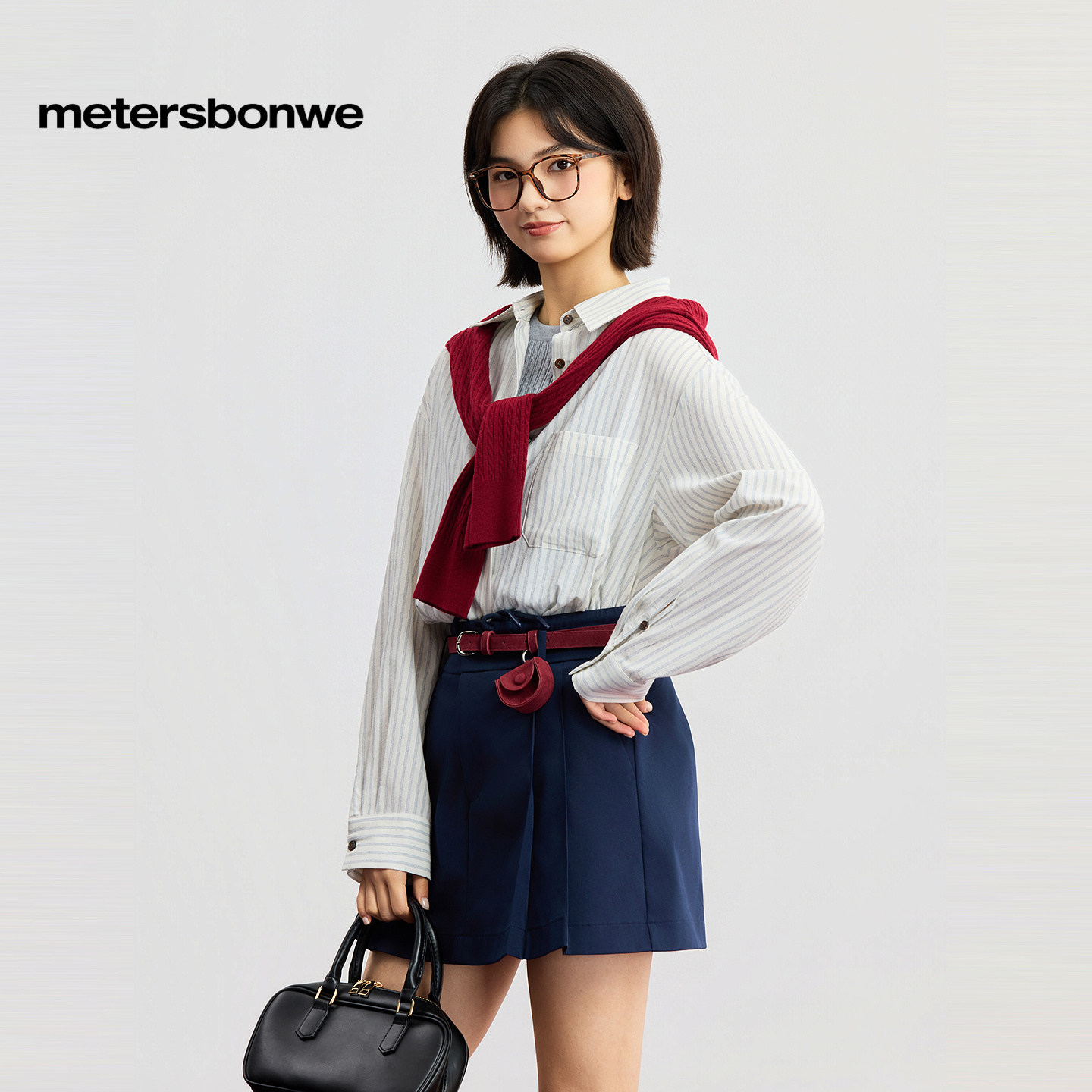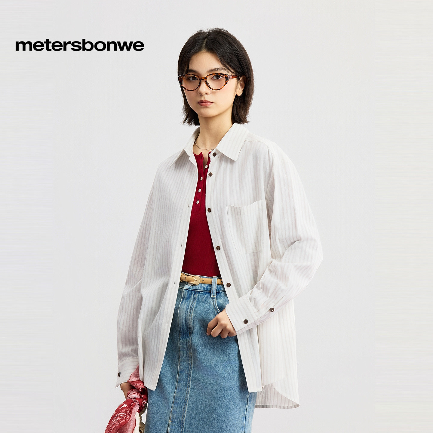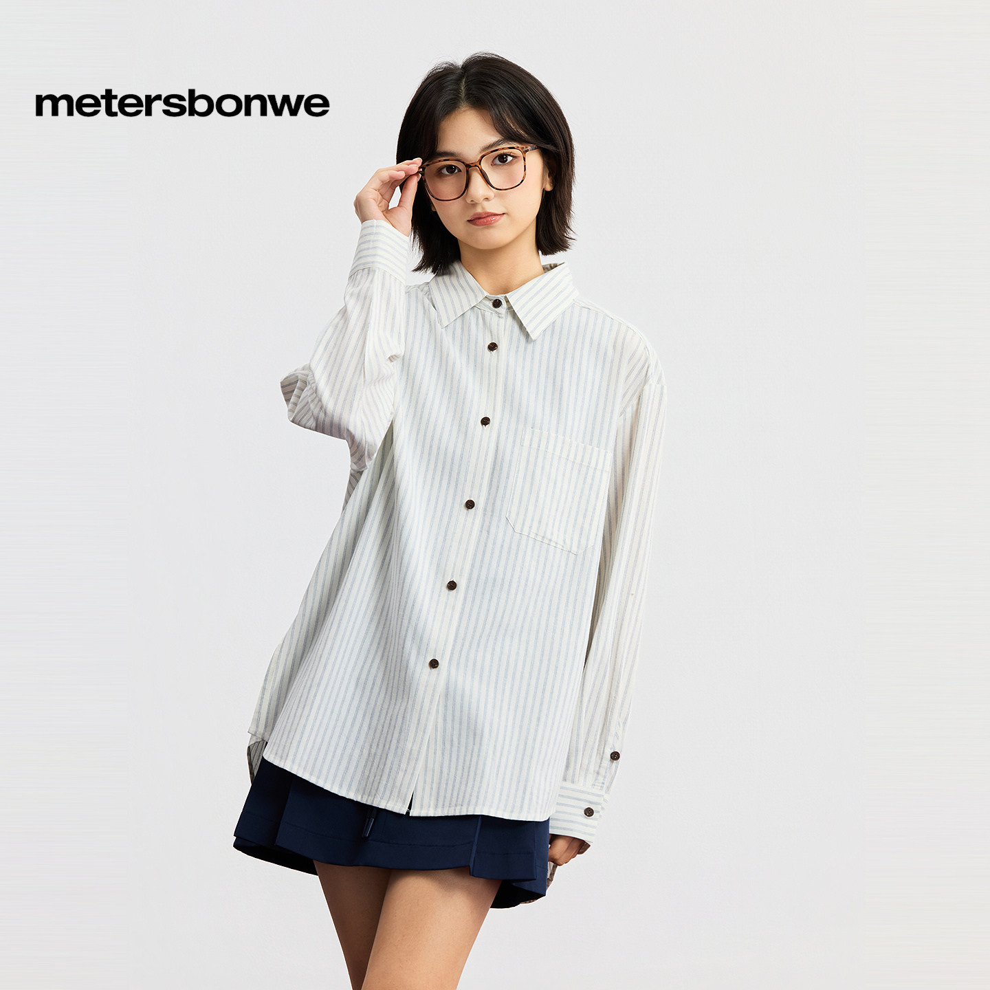 美特斯邦威衬衫女2026春季新款时尚细条纹长袖宽松纯棉上衣内搭