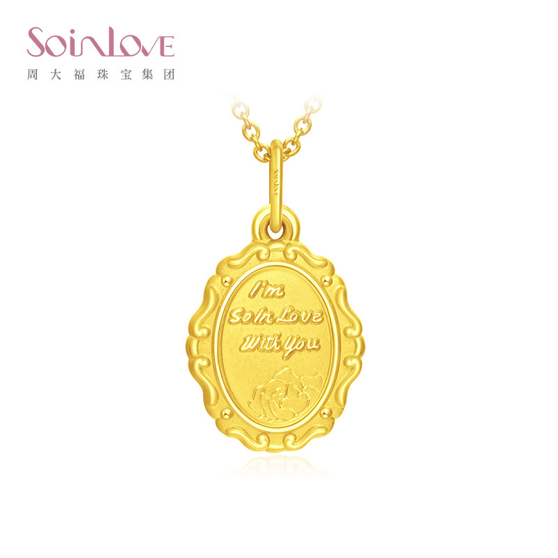 周大福SOINLOVE「凡尔赛花园」黄金玫瑰花牌足金吊坠VR999