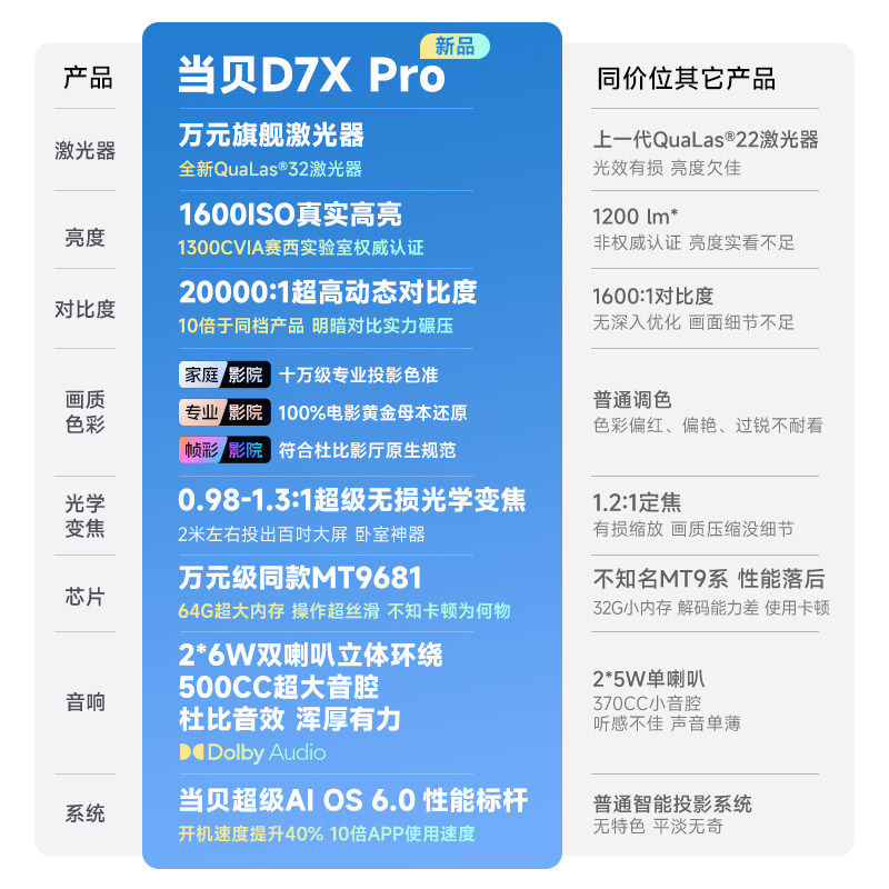 【全国可用补贴】当贝D7X Pro激光云台投影仪2025新品家用超高清高亮智能激光电视游戏投影机家庭影院电视机