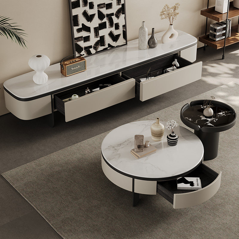 微晶石茶几电视柜组合2025新款客厅家用小户型意式轻奢储物小茶桌