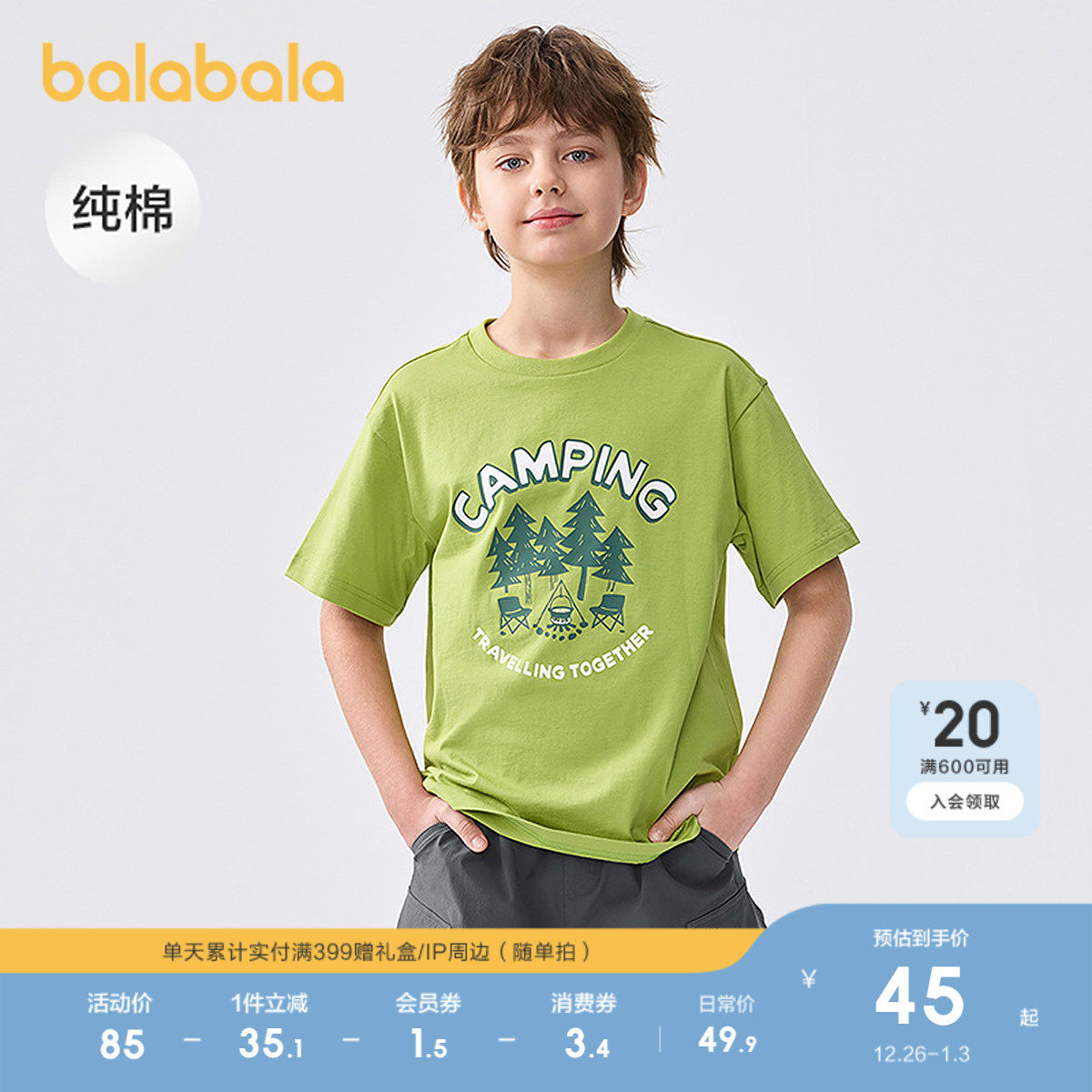 巴拉巴拉童装儿童短袖T恤男童女童2025新款夏装吸湿速干亲子上衣