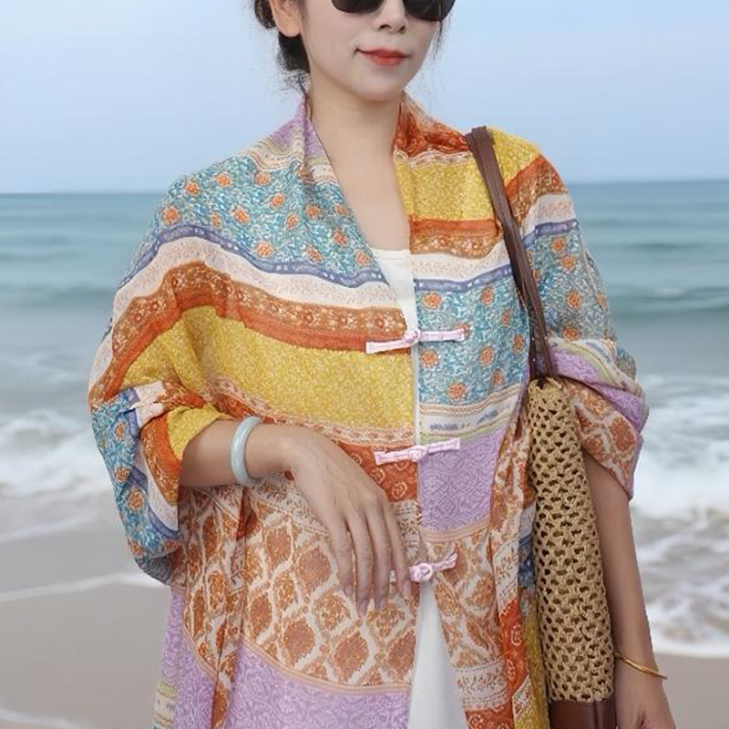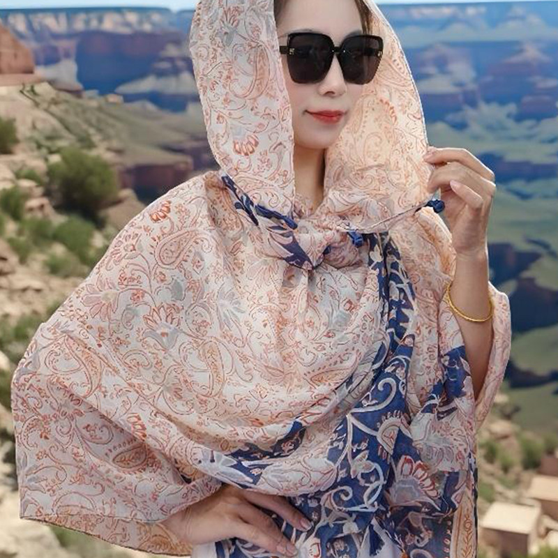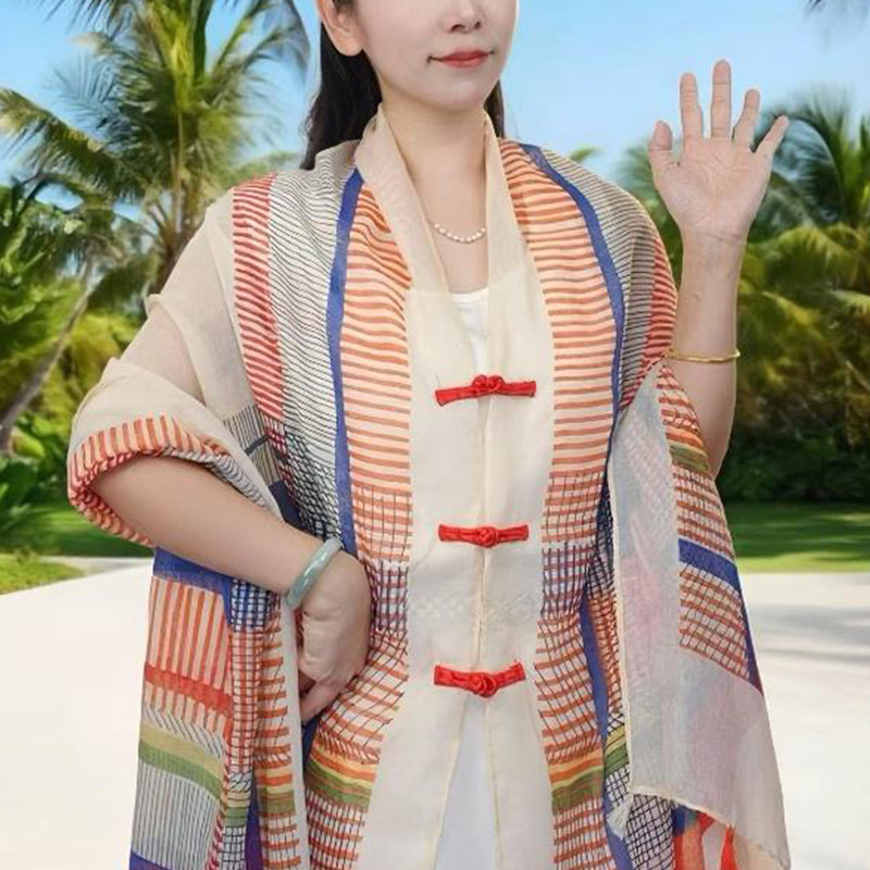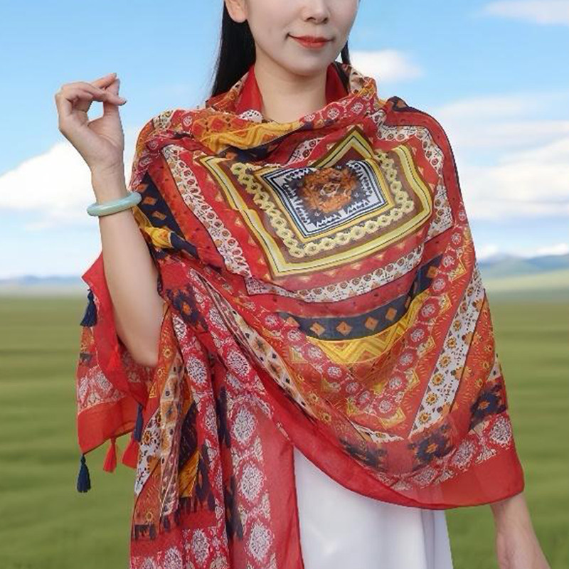薄款民族风拍照披肩女外搭2025新款时尚旅游防晒沙滩巾丝巾红色