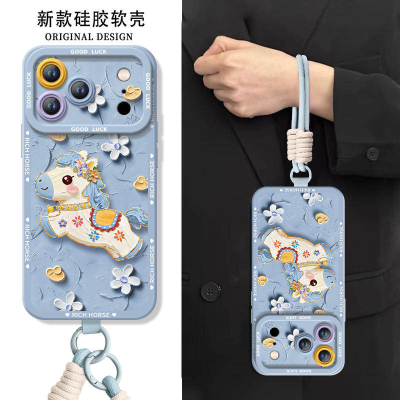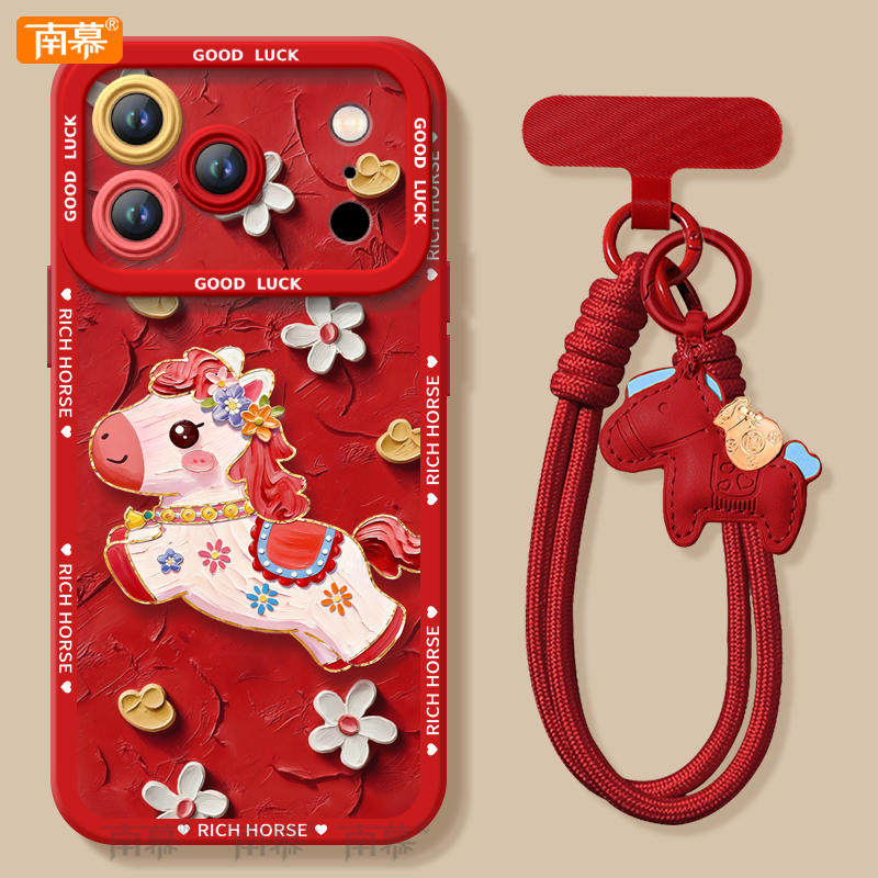 鲜花小马适用苹果17promax手机壳iphone16pro套17马年16新款iPone本命年红pm新年款15的14plus过年ip13高级12