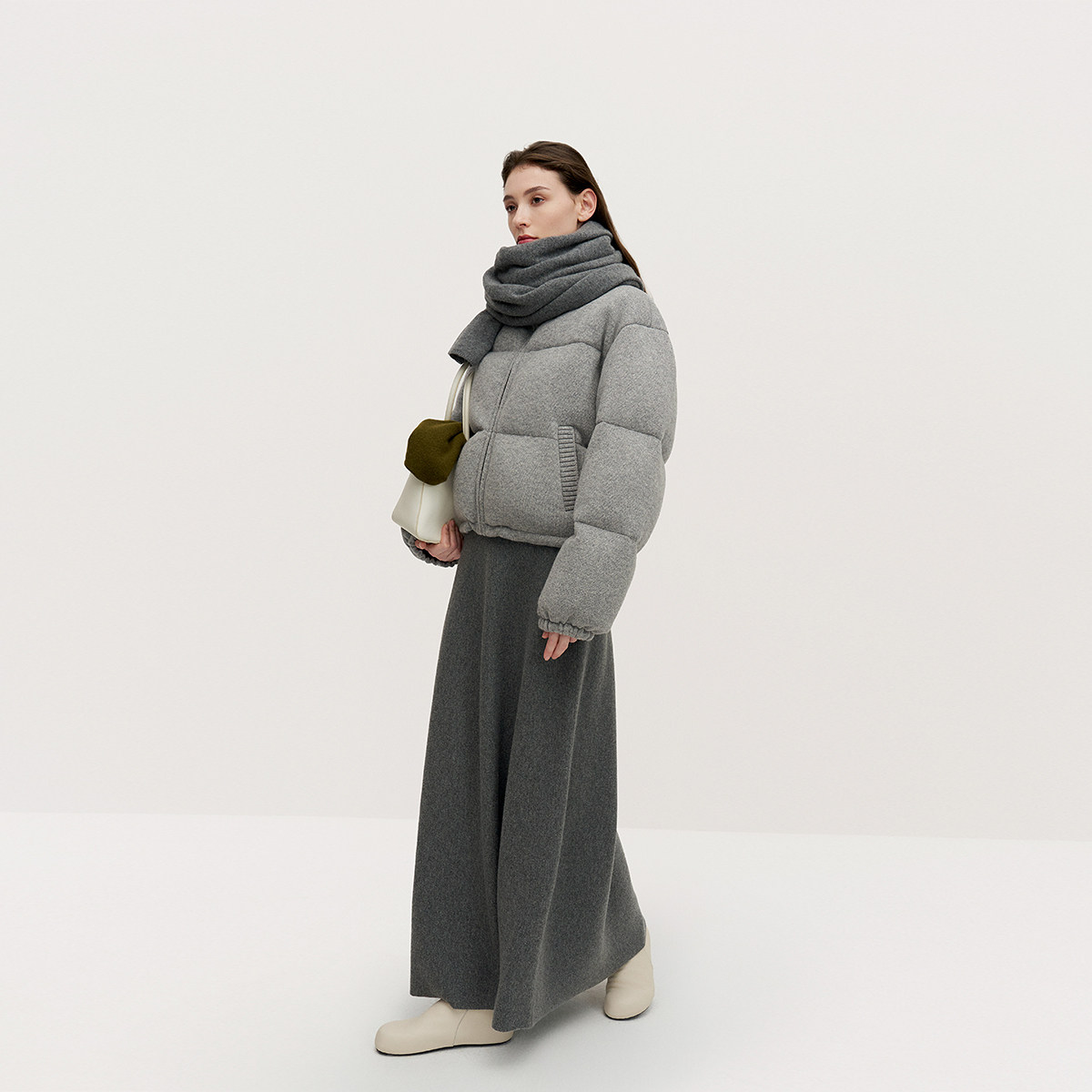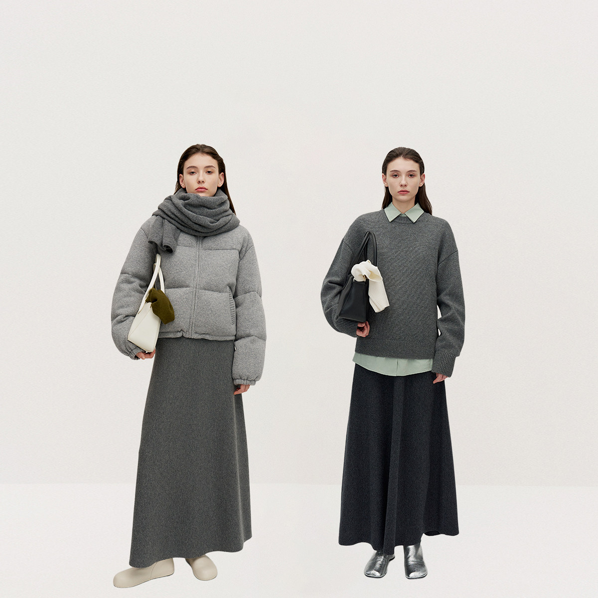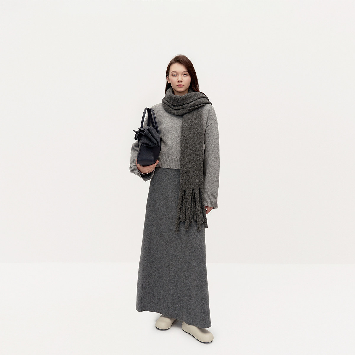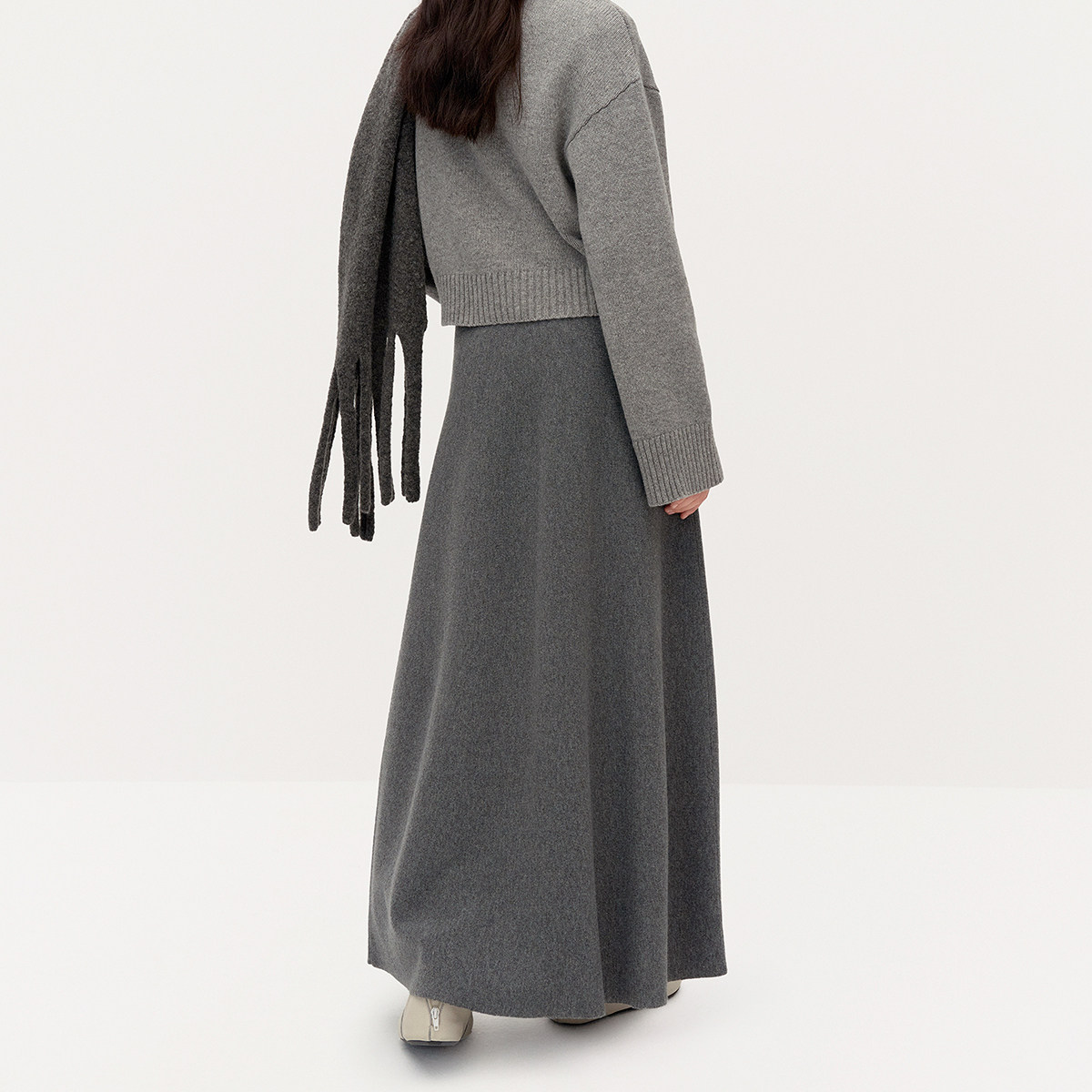 【季末折扣】欧时力 羊毛格雷系a字毛织半身裙中长款高级秋冬新品