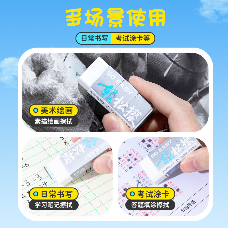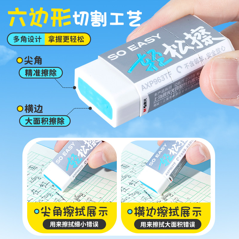 晨光文具轻松擦夹心橡皮一年级小学生专用无屑超干净橡皮擦不易留痕幼儿园安全橡皮美术生像皮擦铅笔擦字成线