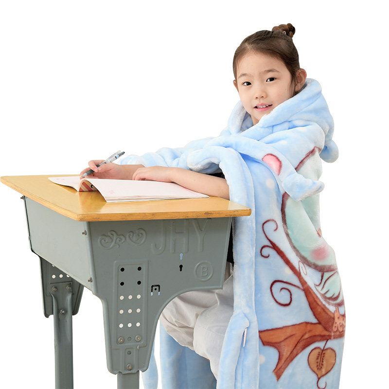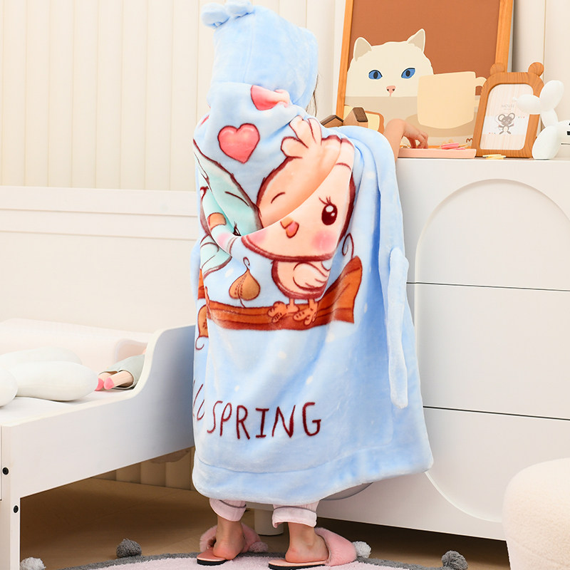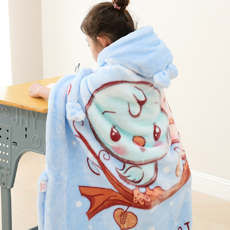儿童冬季珊瑚绒毛毯幼儿园宝宝加厚午睡披肩小毯子小学生斗篷披风
