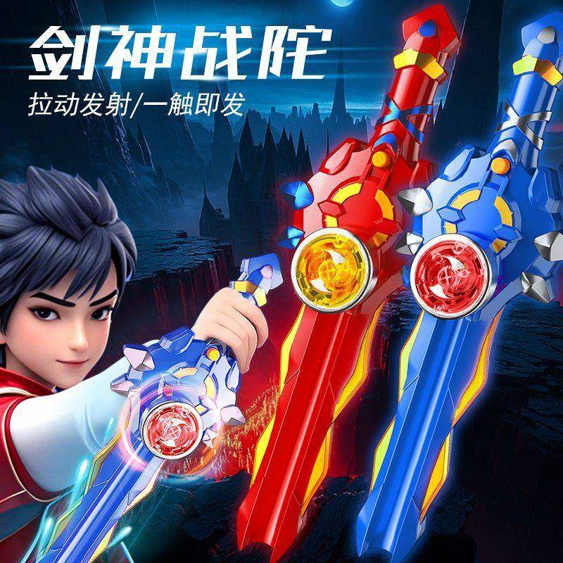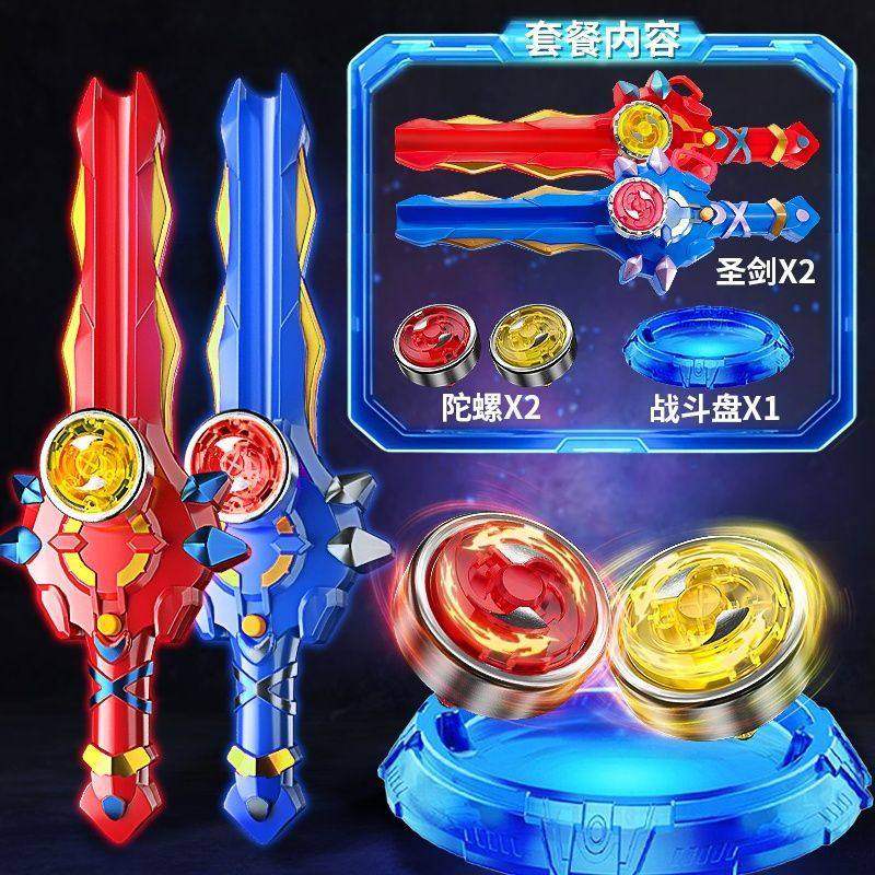 儿童陀螺玩具男孩竞技对战旋转宝剑发射器炫彩战斗陀吸盘剑形礼物