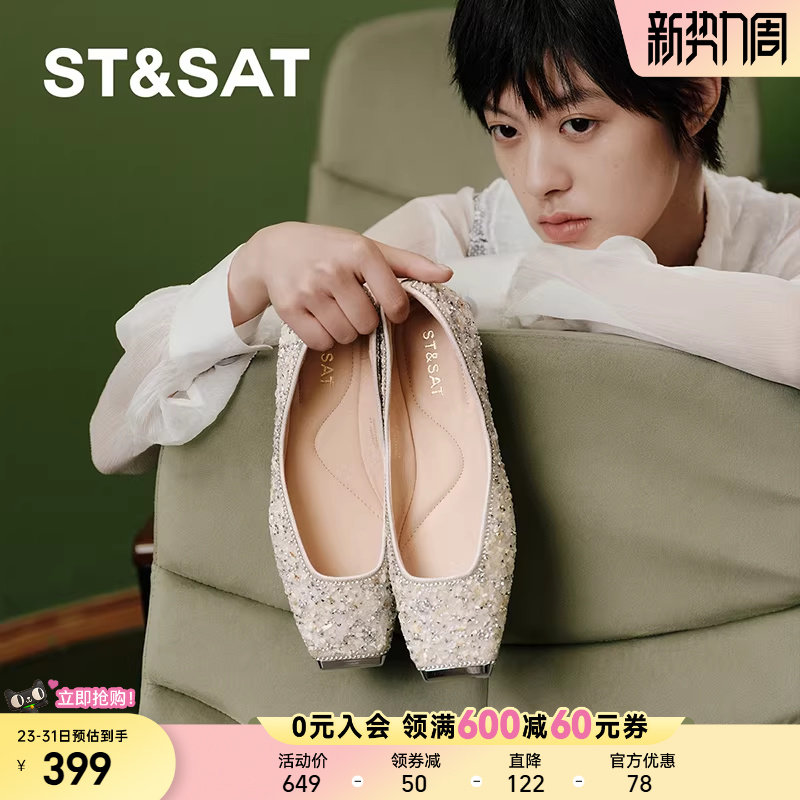 星期六爆款时尚通勤单鞋女2025新款气质方头平底一脚蹬SSD3111489