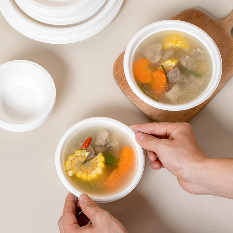 程圆商用一次性纸碗加厚圆形外卖小吃打包餐具饭盒带盖餐盒汤碗