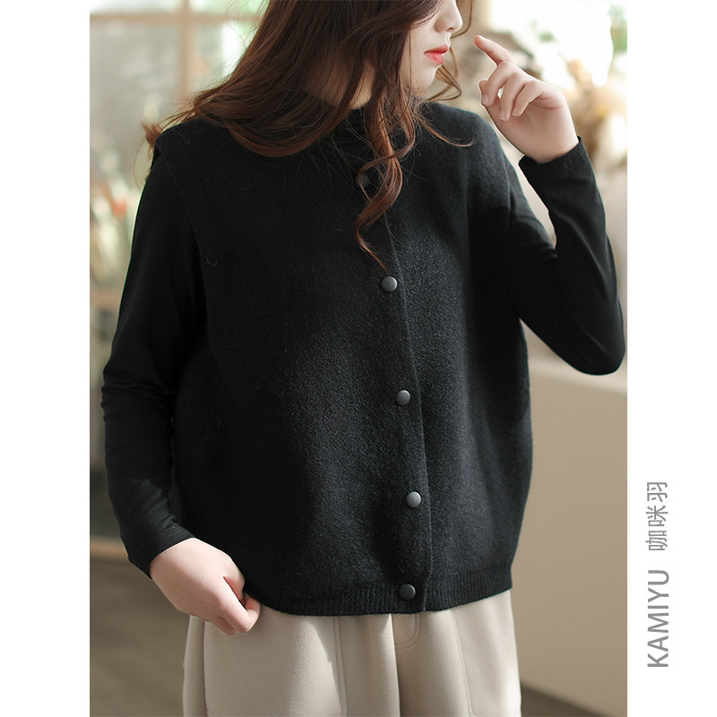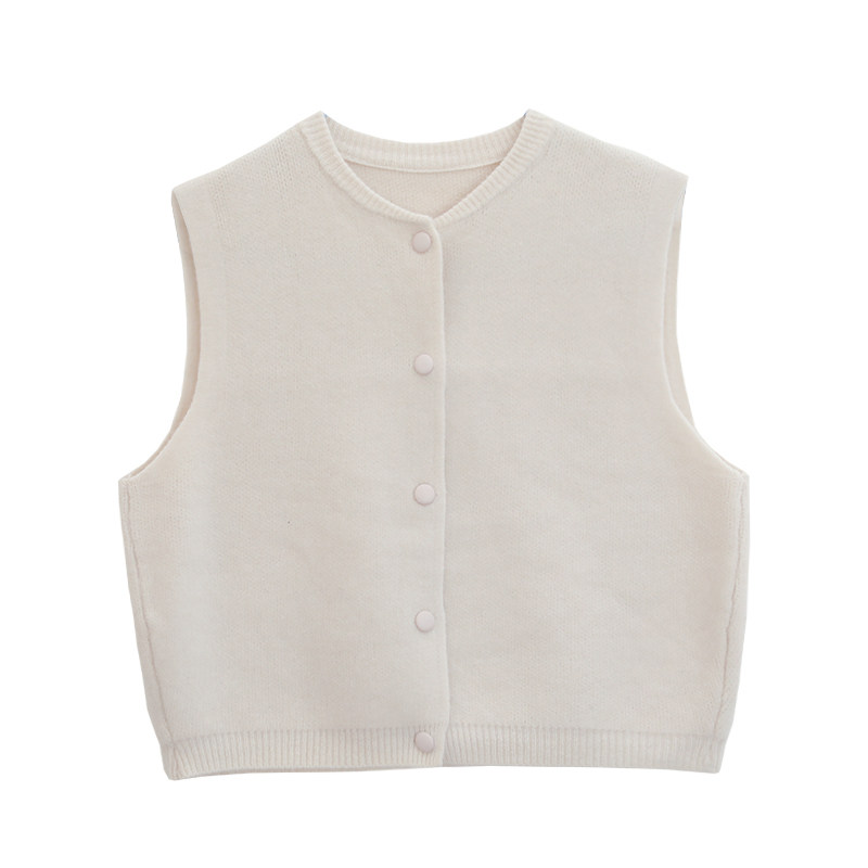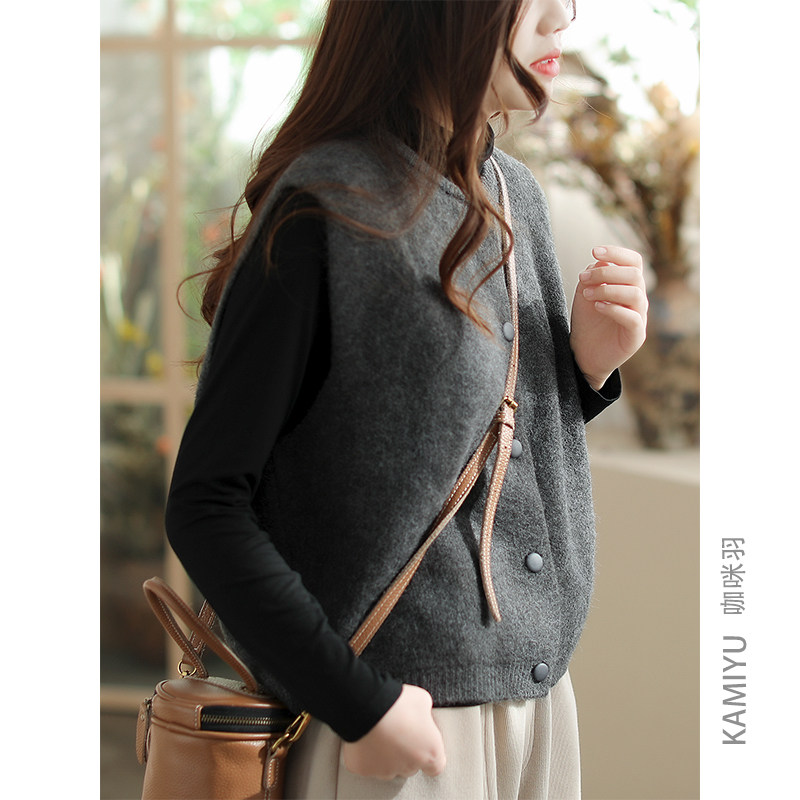 咖咪羽针织马甲女复古背心2024新款小个子开衫时尚圆领气质女装