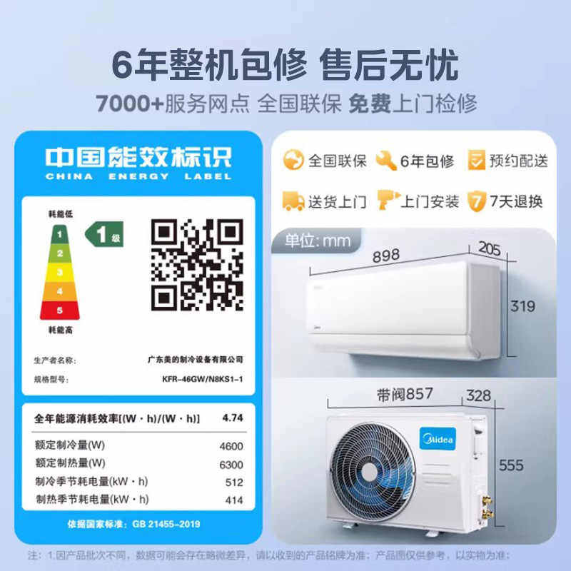 美的空调酷省电2匹挂机一级能效家用客厅变频冷暖官方旗舰店正品