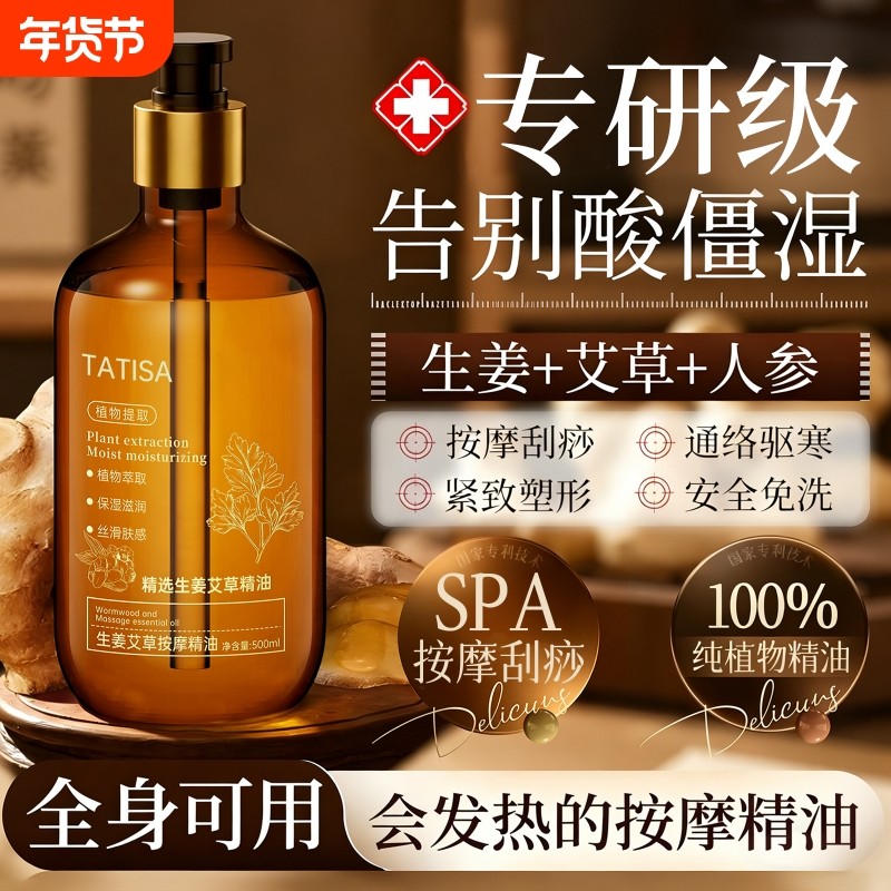 生姜艾草按摩精油全身通经络发热开背推拿刮痧身体正品官方旗舰店