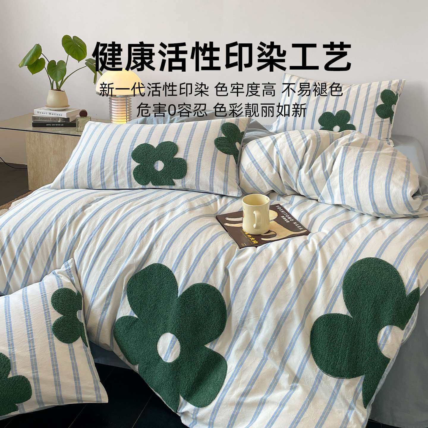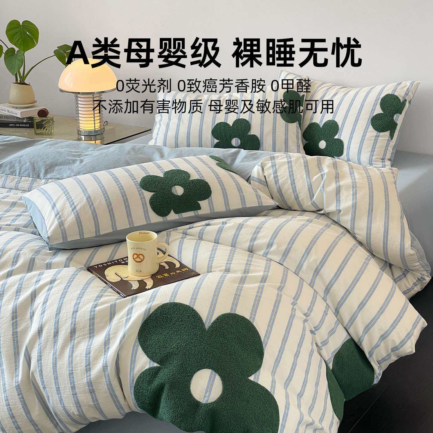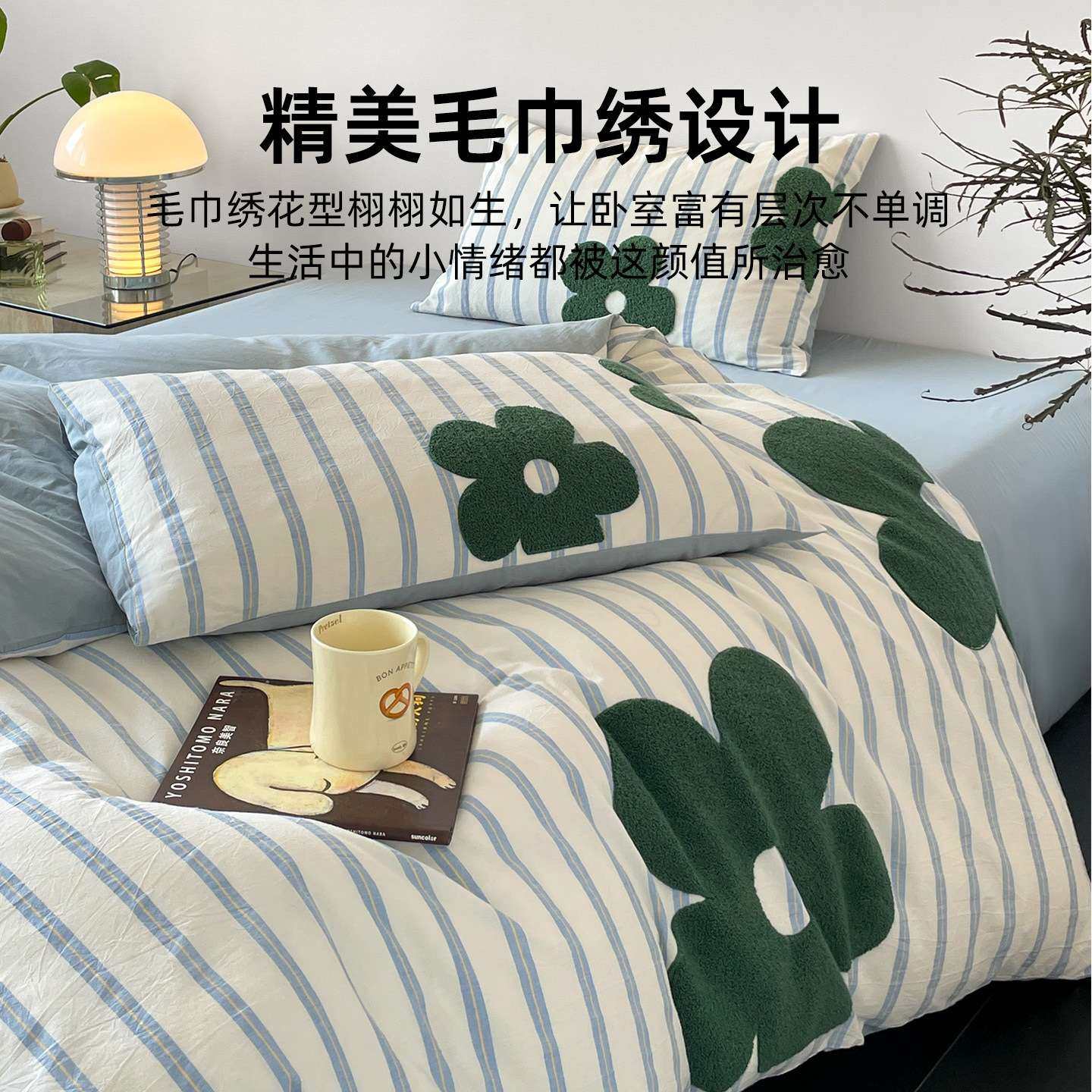 全棉水洗棉毛巾绣四件套纯棉2025新款小清新床单被套床上用品