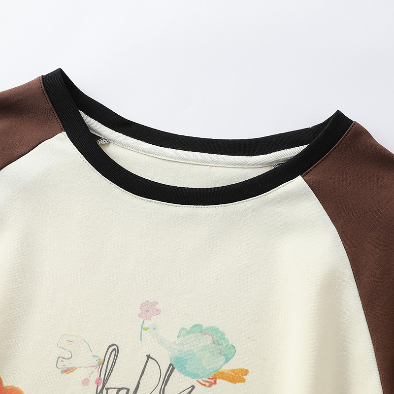 经典插肩袖设计 手绘风插画 舒适罗纹圆领